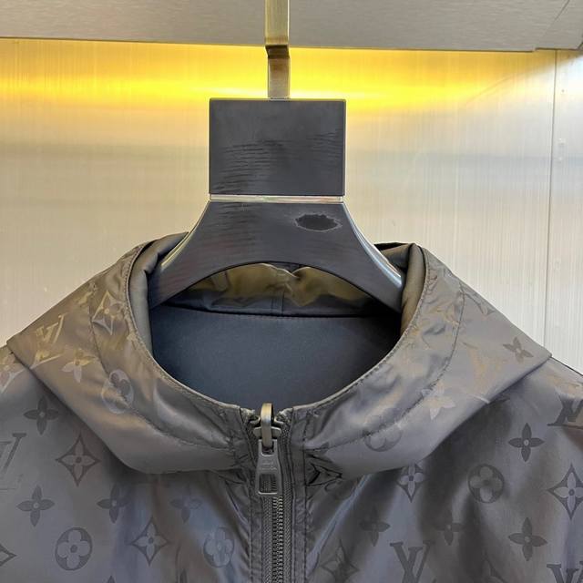 Midnight Side: Pure black matte fabric, exuding a sense of luxury in a low-key manner, the LV logo on the left chest is faintly visible, and the hooded design adds a street functional style.
