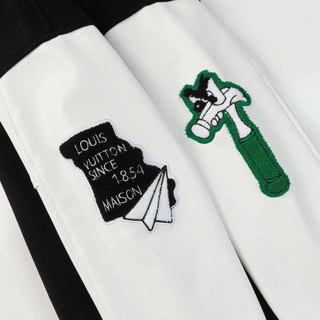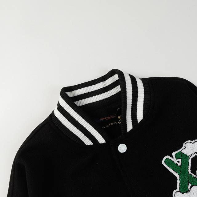 Lv graffiti painting towel embroidery baseball jacket 700G dragon and phoenix nylon with lychee leather cuffs, loose and versatile hardware one-to-one build