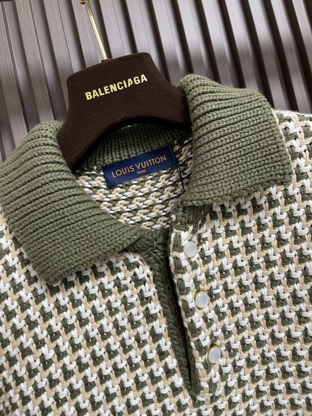 Lv knitted jacquard short-sleeved T-shirt, made from custom-woven brocade silk anti-ball fabric with the iconic Oblique print. Made from a German-made jacquard weave, the yarns are precisely arranged and interwoven, meticulously woven on the loom to create the Lv pattern and texture. The shirt features a three-dimensional seam stitching technique, which creates a more three-dimensional, body-fitting effect. While the workmanship is complex, it pairs well with a variety of bottoms for a stylish look. Custom trims are available, and all three labels are complete! Sizes: S-Xl