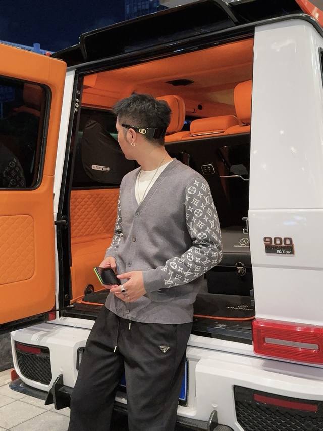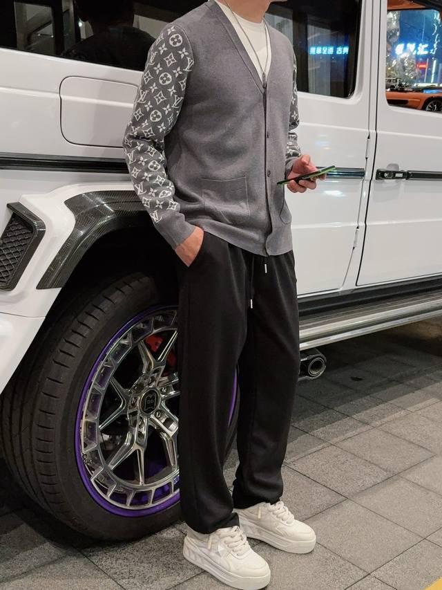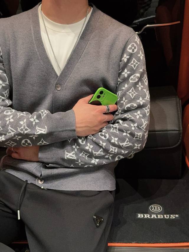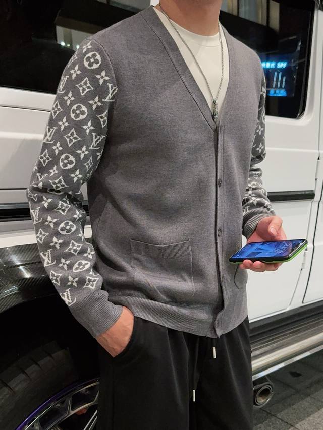 Lv Letter Cardigan Sweater Custom-woven from a collection of luxurious composite