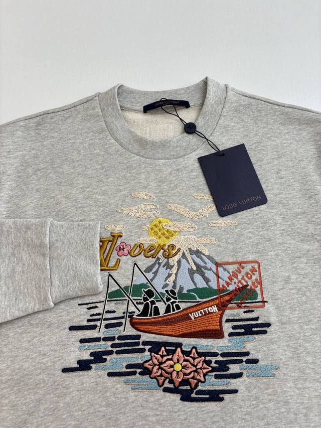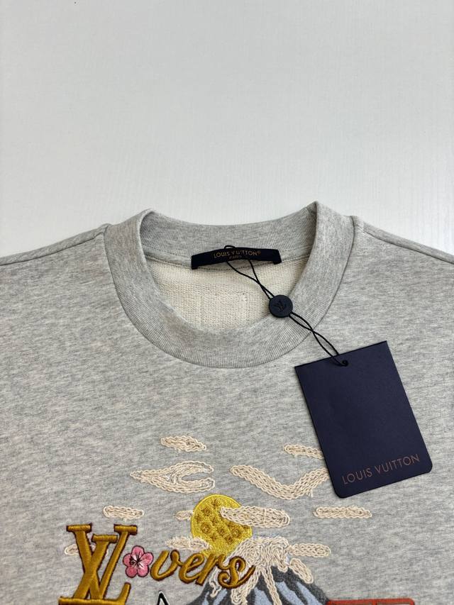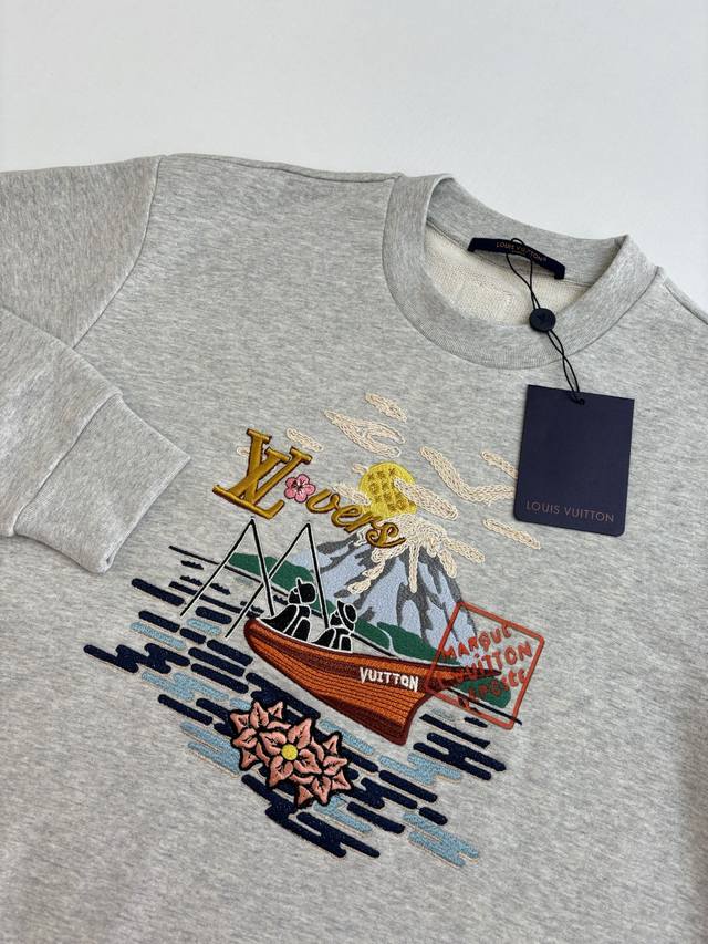 LV* Louis 25Fw New Embroidered Pattern Pullover Sweatshirt DDD Made of imported pure cotton fabric, high-quality texture, comfortable and soft. Regular stretch fit, dense knit, stylish and windproof. Wide ribbed trim on the collar and cuffs echoes the hem. Embroidered pattern on the chest, combined with letter embellishments, highlights its high-end positioning and fashionable style, creating a trendy atmosphere and making the style more timeless and versatile! DDD Size: SML DDD
