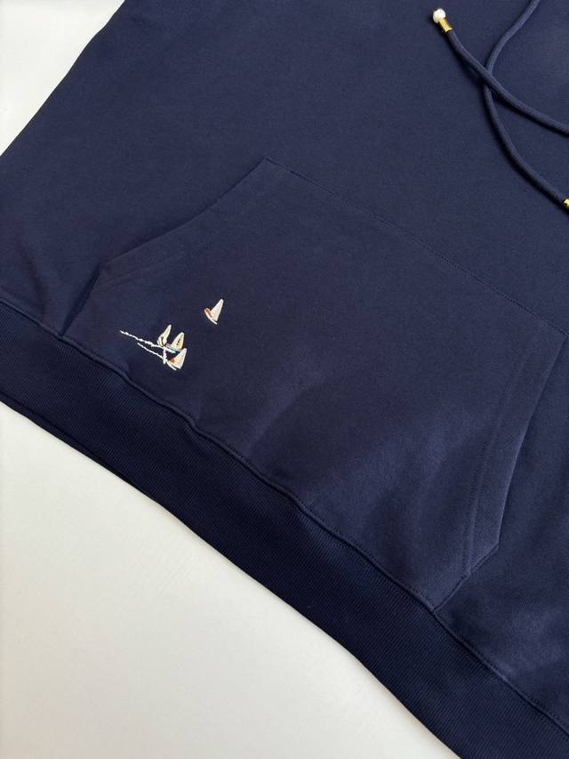 LV Louis Embroidered Sailboat Letter Hooded Sweatshirt DDD Crafted from custom pure cotton fabric, this sweatshirt boasts exceptional quality, a soft and comfortable feel, and is gentle on the skin. Adorned with embroidered sailboat patterns on the front and back using a tatami-style technique, the colorful sailboat designs and letters are custom-dyed to match the fabric. It can be paired with various clothing items to create a stylish look. Custom accessories DDD Size: SML XL DDD