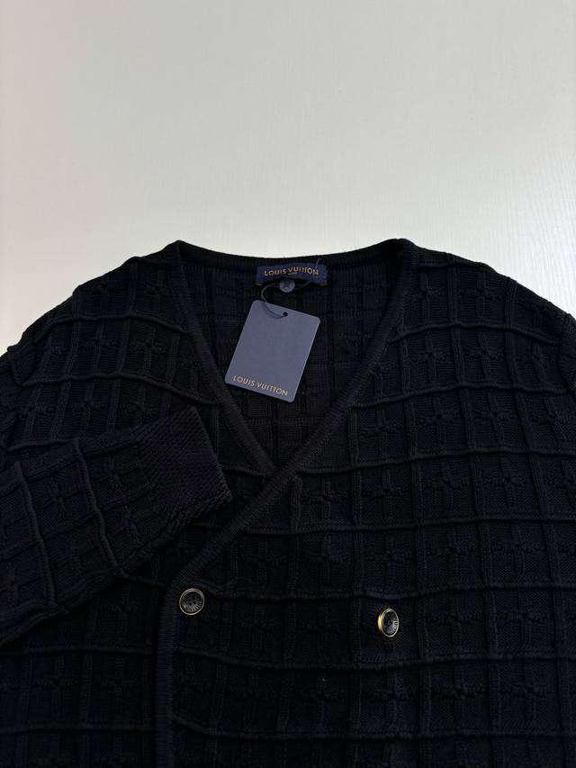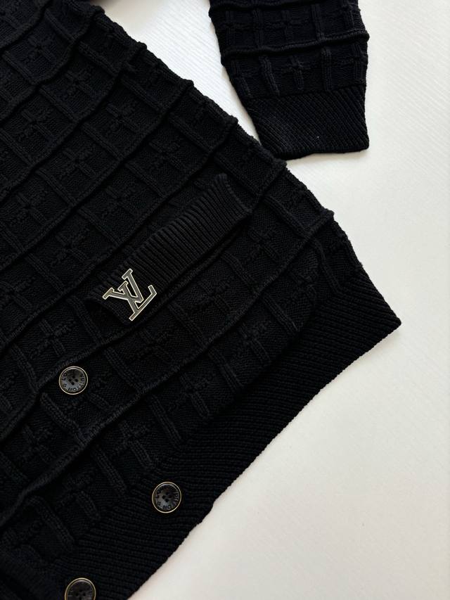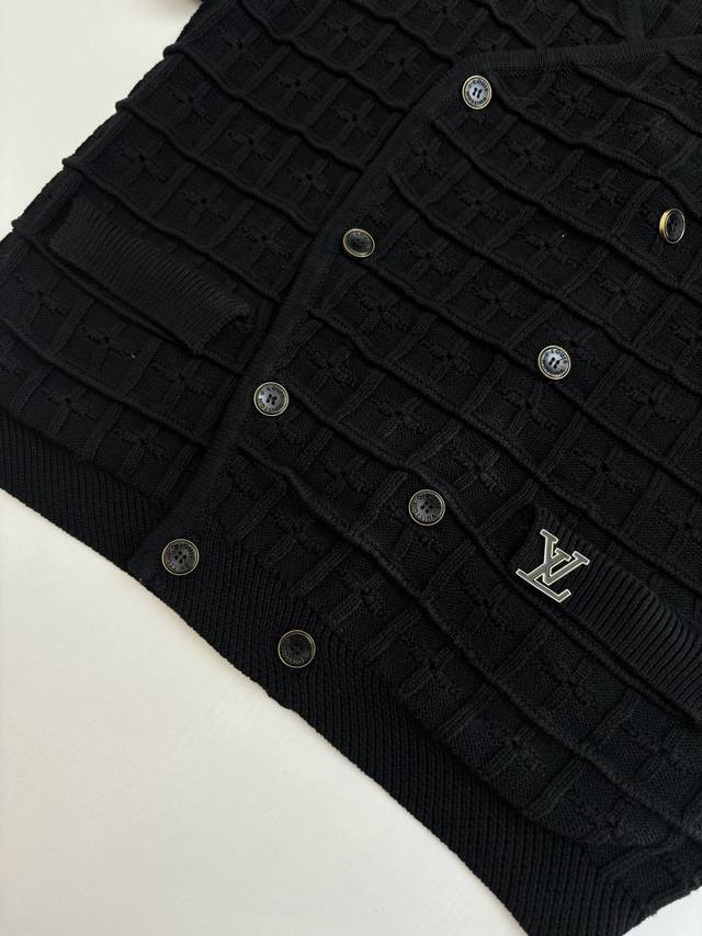 LV Louis Idol Logo Cable Knit Jacquard Double-Breasted Knit Cardigan DDD The entire garment is knitted on an imported 10-needle machine, featuring a full floral logo design and cable knit pattern. The finished garment undergoes a wash to maintain its shape and enhance its feel. DDD Size: SML XL DDD