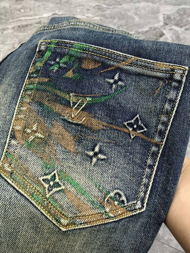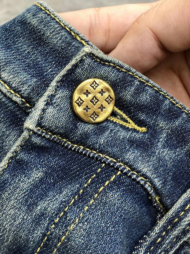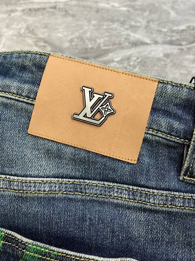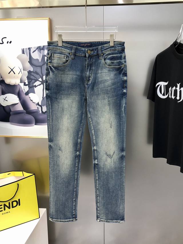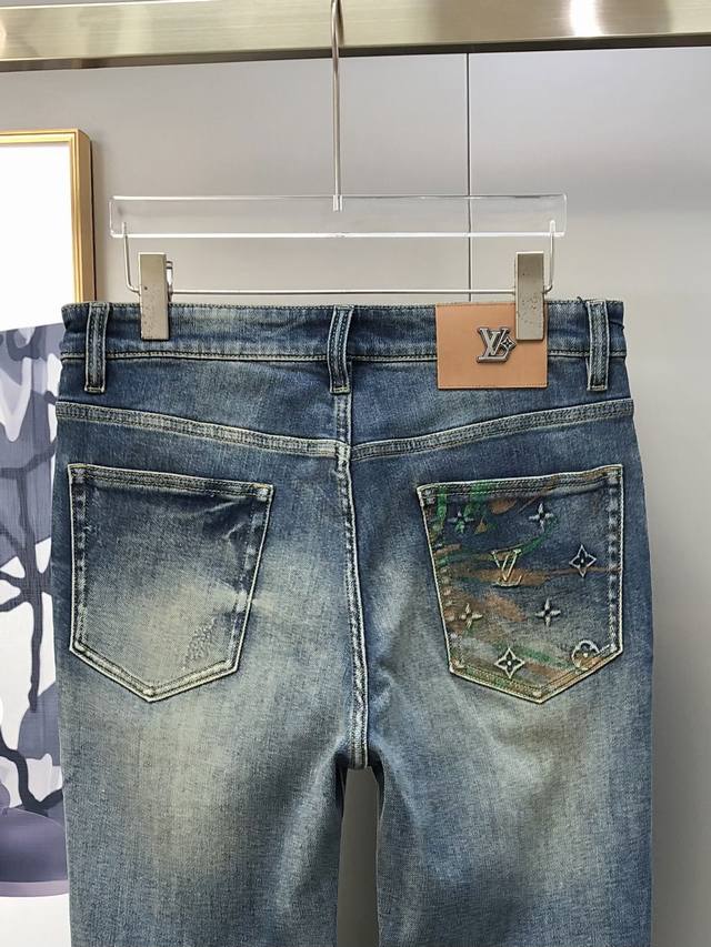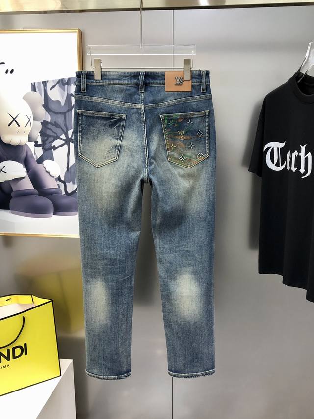 Lv Louis Vuitton 2025 early autumn new men's slim-fit skinny jeans, synchronized with the official website, simple and fashionable hot-selling black cow, high-end custom original single, hot goods, back trouser pocket embossed rubber printed logo pattern design, customized imported denim washed denim pure cotton fabric, original accessories, fine workmanship, cool and energetic, soft and delicate, comfortable and breathable commuter style, extremely high matching rate and extremely durable, counter quality, super handsome and stylish, size: 29-38, with stretch, 35, not 37, shipped the next day