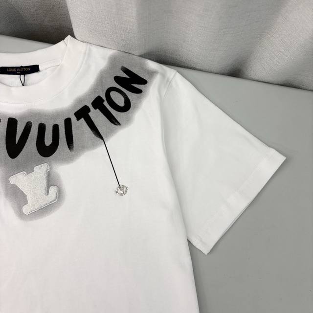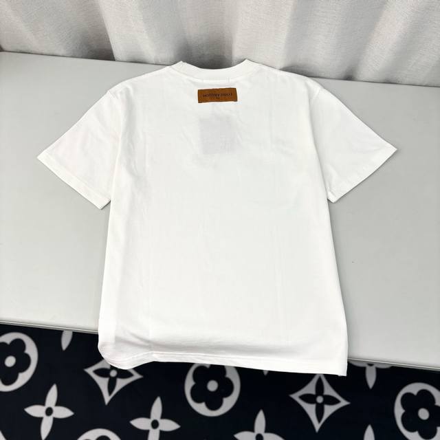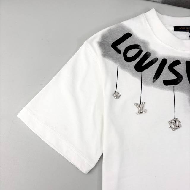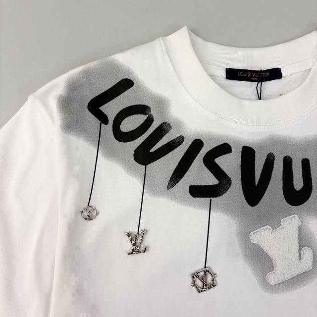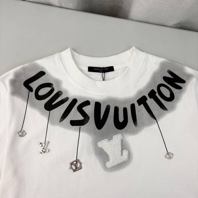 Lv Louis Vuitton 2025 Logo embroidery heavy craft round neck pullover short slee