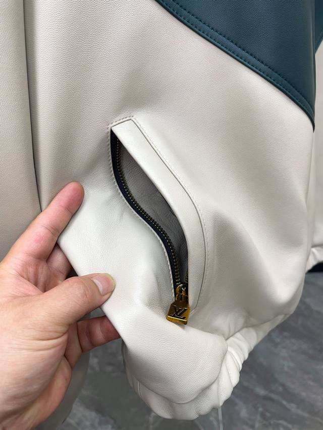 / LV Louis Vuitton 2025 New Lambskin Patchwork Leather Jacket, crafted from import