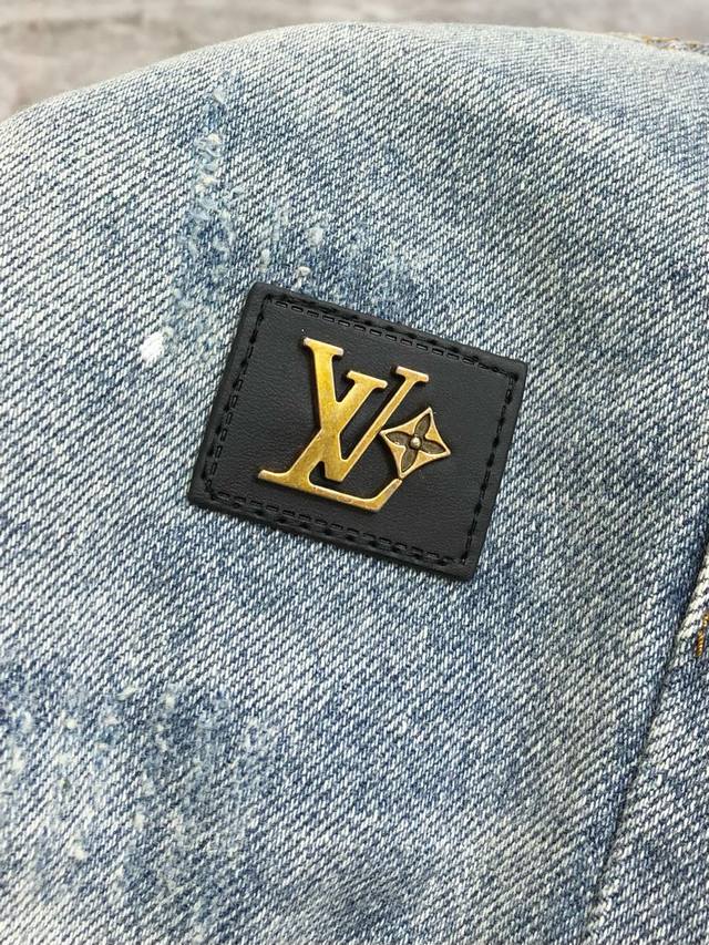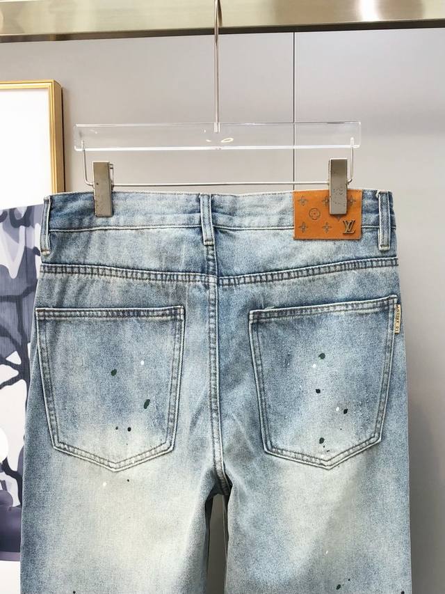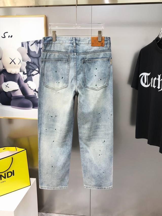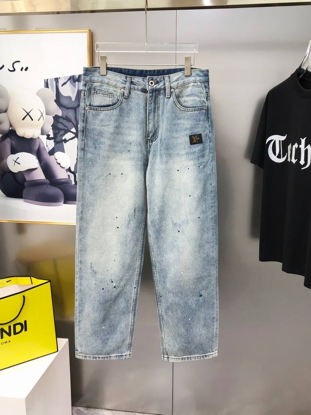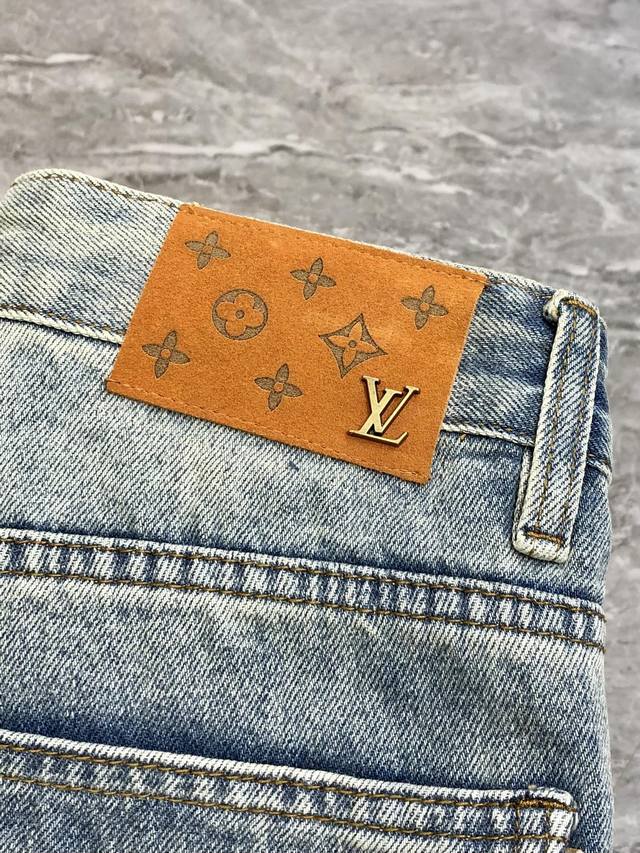 Lv Louis Vuitton 2025 Spring/Summer new men's loose straight jeans, synchronized with the official website, personalized hot-selling high-end custom original single goods, simple and fashionable embroidered logo design, customized imported tannin washed denim pure cotton fabric, original accessories, fine workmanship, cool and energetic, soft and delicate, comfortable and breathable, extremely high matching rate and high wear rate, counter quality, super handsome and stylish, size: 29-38, no 35, 37 shipped the next day