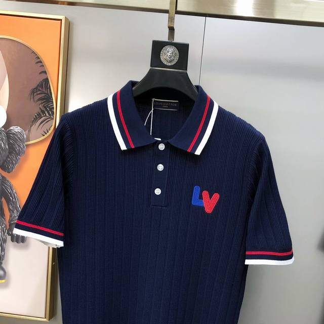 Lv Louis Vuitton 2025 Spring/Summer new men's original lapel short-sleeved knitted sweater, sold simultaneously on the wardrobe counter. High-end quality hot-selling fashion and versatile chest embroidery logo design. Custom imported Tencel cotton blended fabric, customized original accessories, soft and delicate, easily highlighting the temperament, the upper body is versatile and slimming! The fabrics and factories we choose are all used by first-line brands. The fine workmanship is very handsome. Size: M-3Xl. The largest size can wear about 185 pounds. Please indicate your height and weight when placing an order. It will be shipped the next day. Royal blue