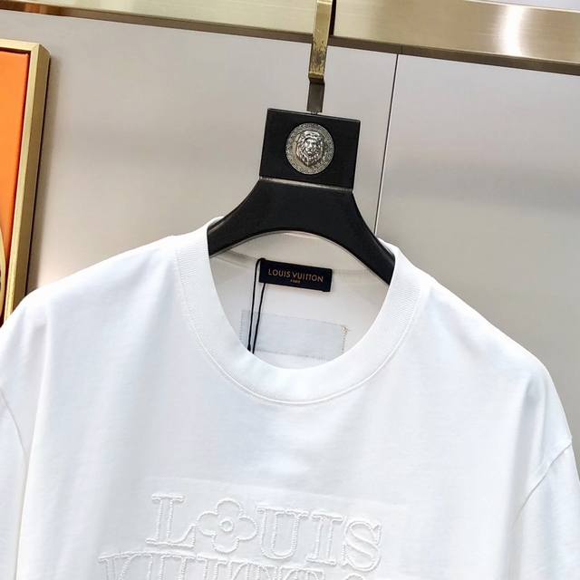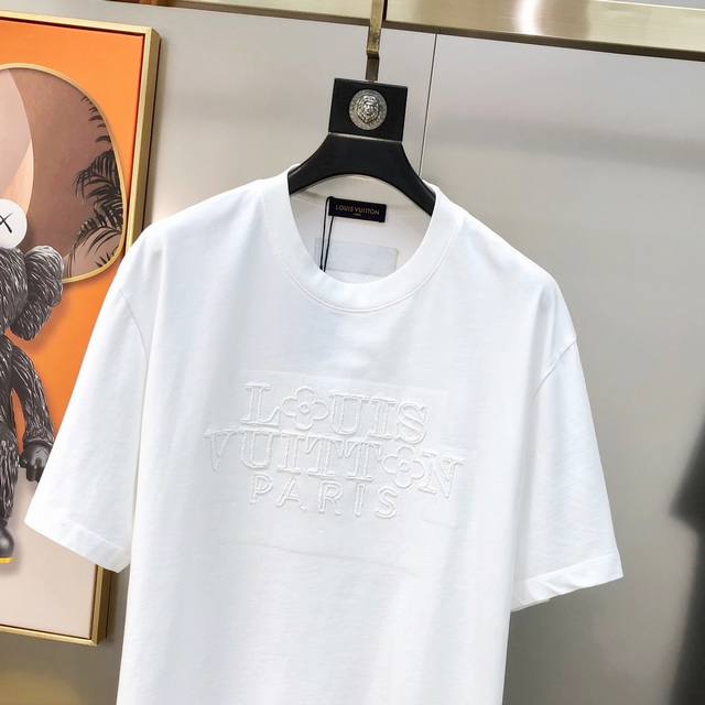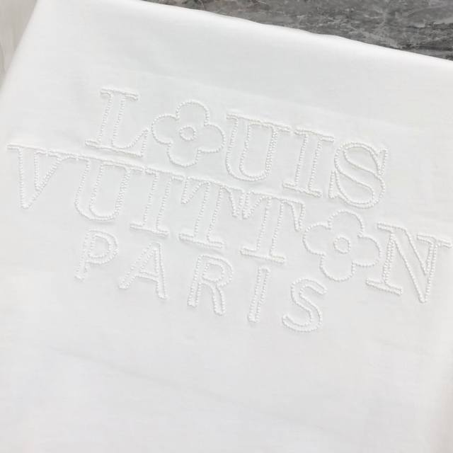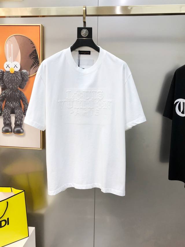 Lv Louis Vuitton 2025 Spring/Summer new original men's round neck short-sleeved T-shirt, sold simultaneously in the counter, popular high-end quality, high version, Os version, wide version, three-dimensional embroidered letter logo design, customized imported double-strand 100% cotton fabric, soft and delicate to the touch, skin-friendly and comfortable to wear, fine workmanship from the OEM factory, very handsome and stylish, three complete sizes: S-2Xl, slightly large, the largest size can fit about 200 pounds, please indicate your height and weight when placing an order, black and white, shipped the next day