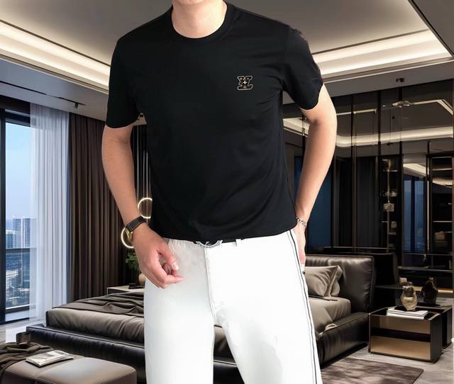 Lv Louis Vuitton 2025 Spring/Summer new original men's round neck short-sleeved T-shirt, high-end customization, fashionable and versatile, sold simultaneously at the counter, printed rubber logo pattern design, customized for customers, imported double mercerized cotton fabric, skin-friendly and comfortable to wear, soft and breathable fabric, and very delicate touch. The lining is all made of single-needle lockstitch technology! It can ensure that it will not deform when worn! The tailoring is appropriate, without any sense of restraint, and the OEM p workmanship is fine, showing temperament and grade, and the upper body is very handsome. Size: M-4Xl, the largest size can wear about 195 pounds, please state your height and weight