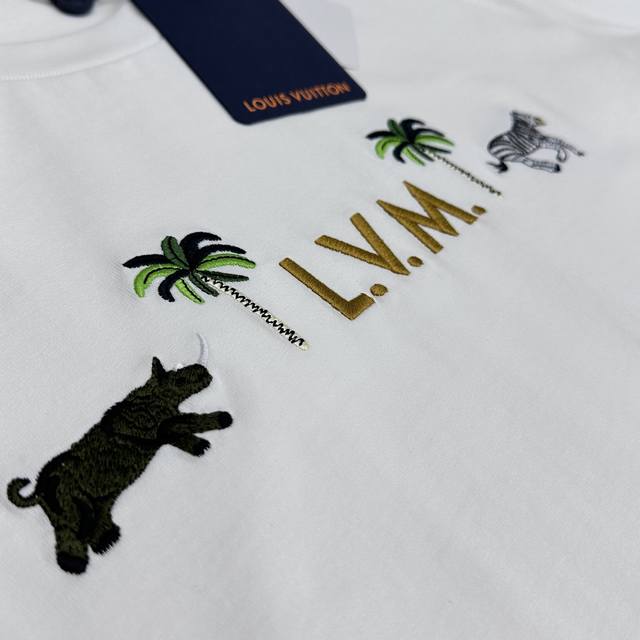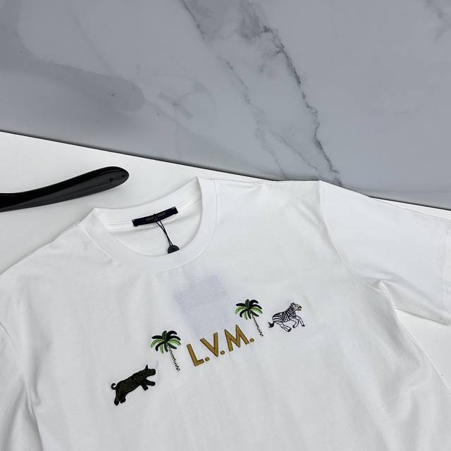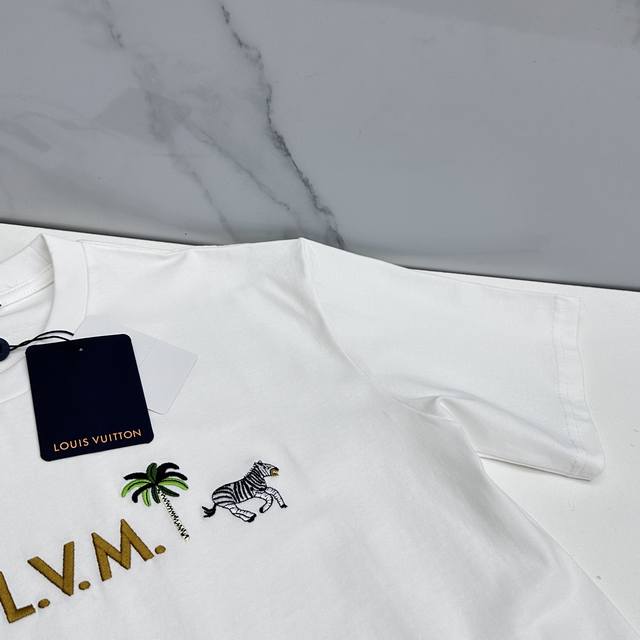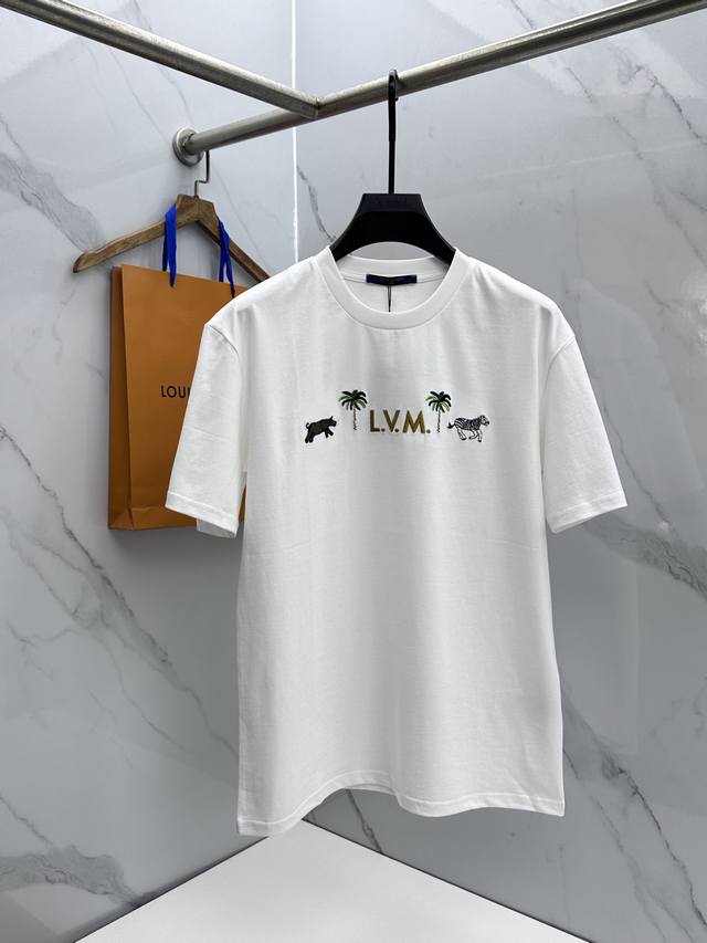 LV Louis Vuitton 2026 Spring/Summer New Logo Embroidered Short-Sleeve Shirt, Runway Synchronized, Double Yarn Pure Cotton Fabric. Diverse styling options represent the current cutting-edge fashion trend, a collision of retro and modern elements, and an extreme, almost violent aesthetic. A7 Fashionable Matching, All Labels Included. Sizes: S-XL.