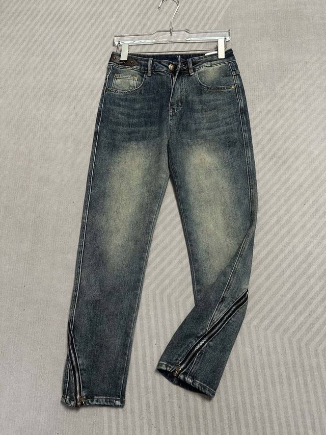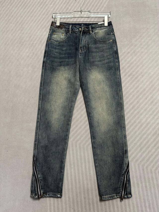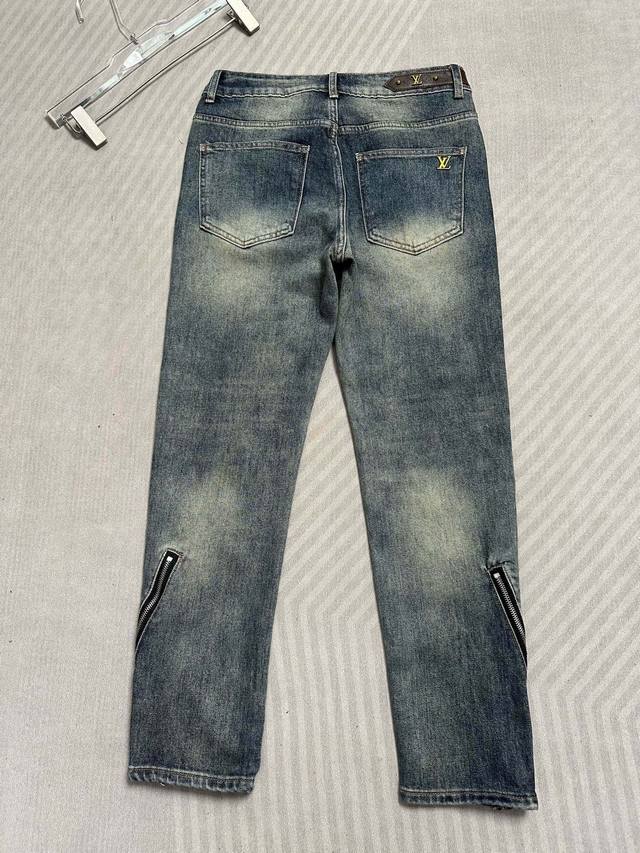 Lv (Louis Vuitton) 25Ss Summer New Arrival Jeans, High-end Quality, Super Soft and Comfortable Fabric, Slim Straight Leg Fit, Long and Slim Fit, Zippered Hem, Versatile Style. Sizes: 29, 30, 31, 32, 33, 34, 36, 38.