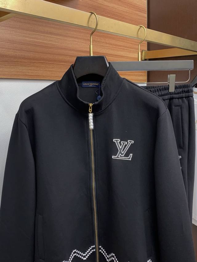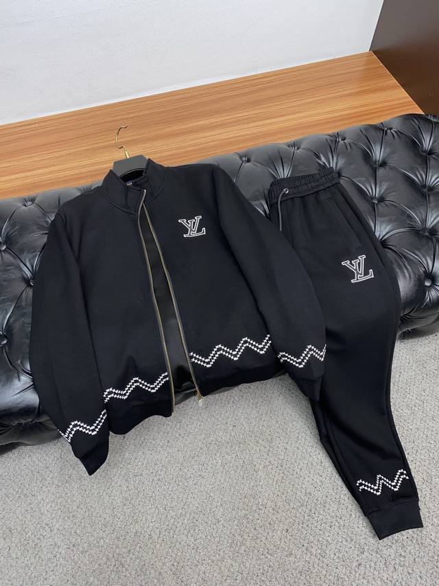 LV Louis Vuitton 25th Anniversary Newest Cardigan Set DDD Latest and Top-Tier Classic Embroidery. Heavy-duty stand-up collar classic pattern trendy casual set, top-quality, only sold in boutiques. Top-tier craftsmanship, imported thickened new air-layer fabric, unique boutique design, using imported high-end custom-made silk thread for a first-class feel!! DDD Sizes: M-3XL DDD