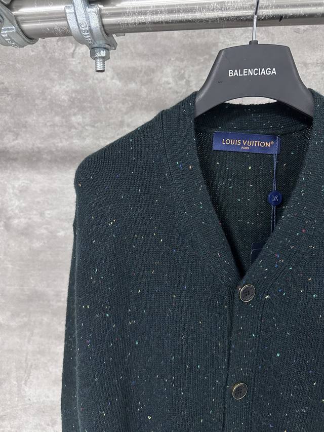 Lv Louis Vuitton Contrast Spotted Cashmere Knit Cardigan