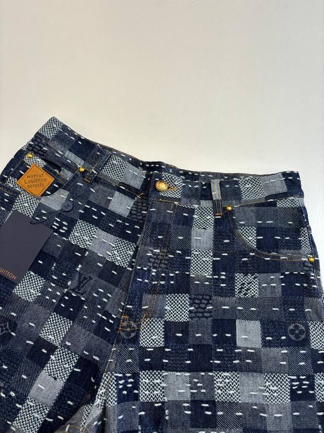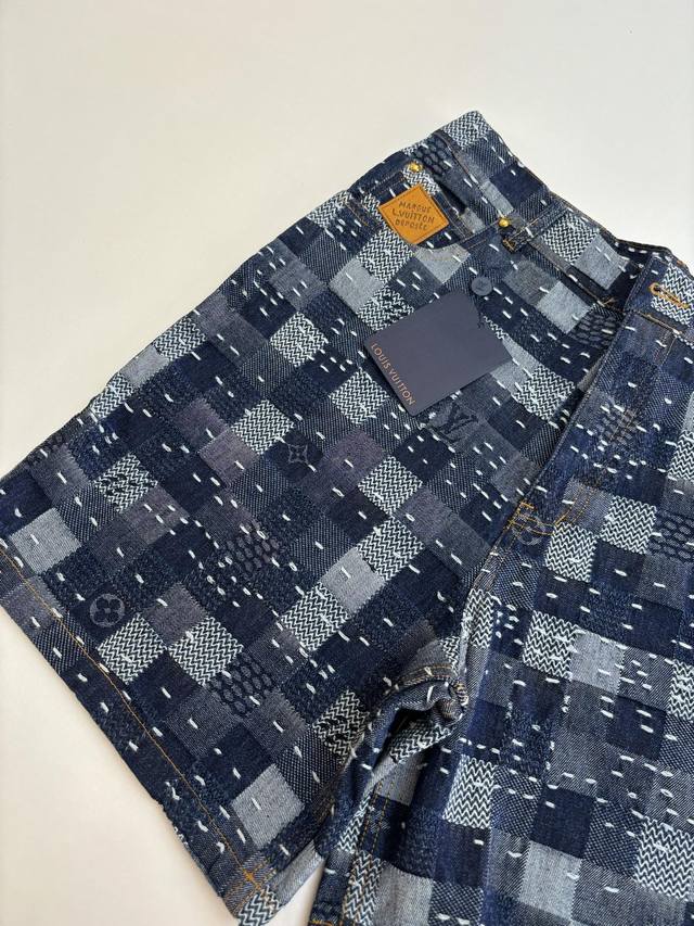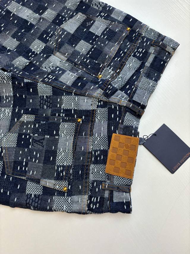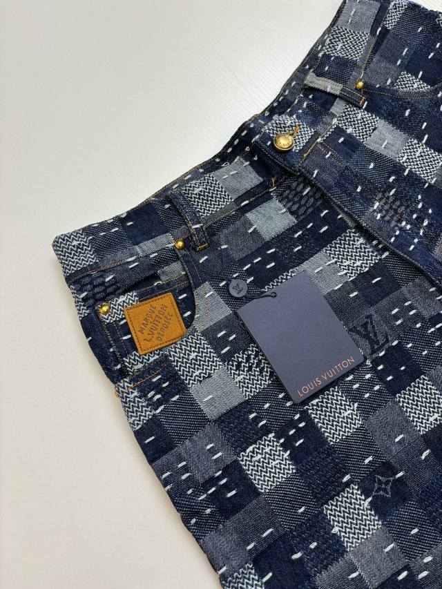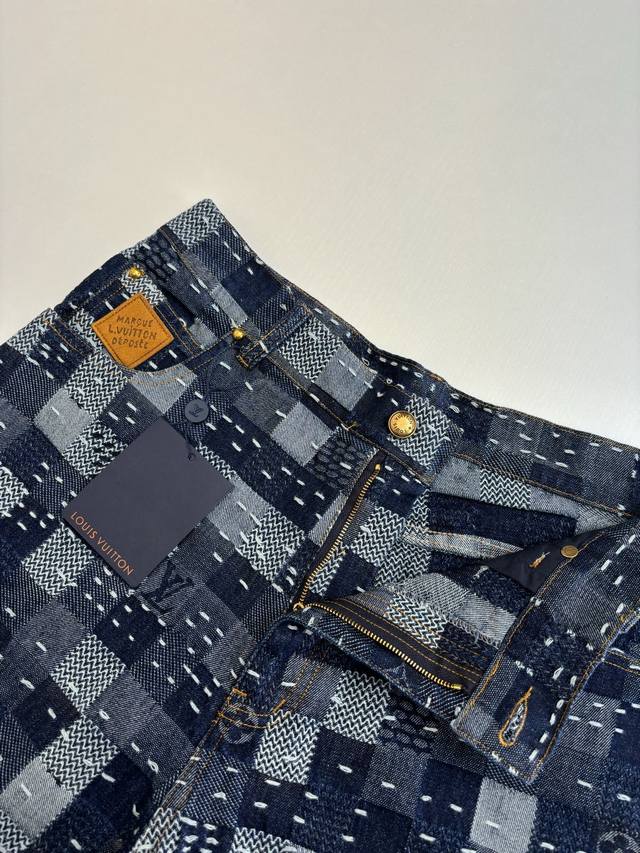 LV Louis Vuitton Nigo Collaboration Check Embroidered Denim Shorts DDD This skateboard is from the 2025 Fall/Winter collection presented by pharrell Wiliams and Nigo. It incorporates classic elements of the brand into the Damier check pattern, paying homage to traditional Japanese patchwork techniques with striking stitching. Perfect for creating a runway look with the same style. DDD Size: S-29 M-30 L-31 XL-32 DDD