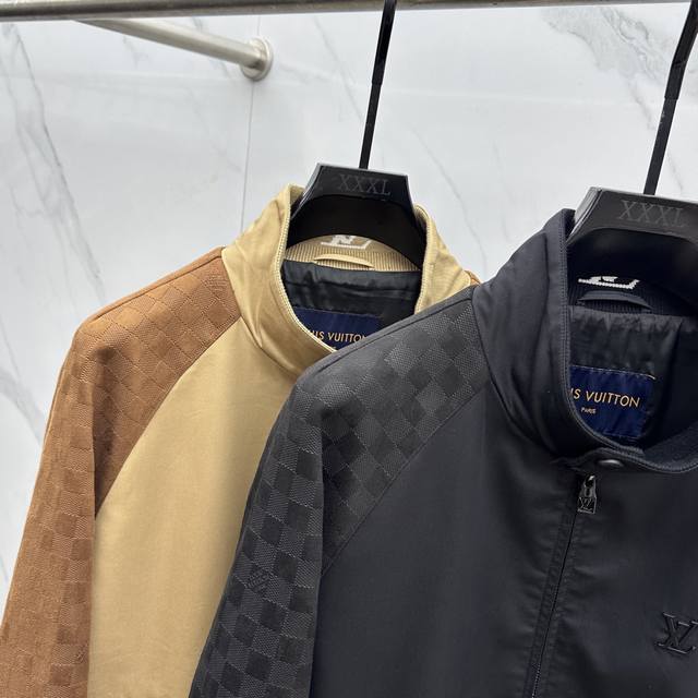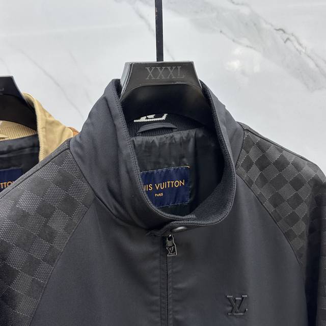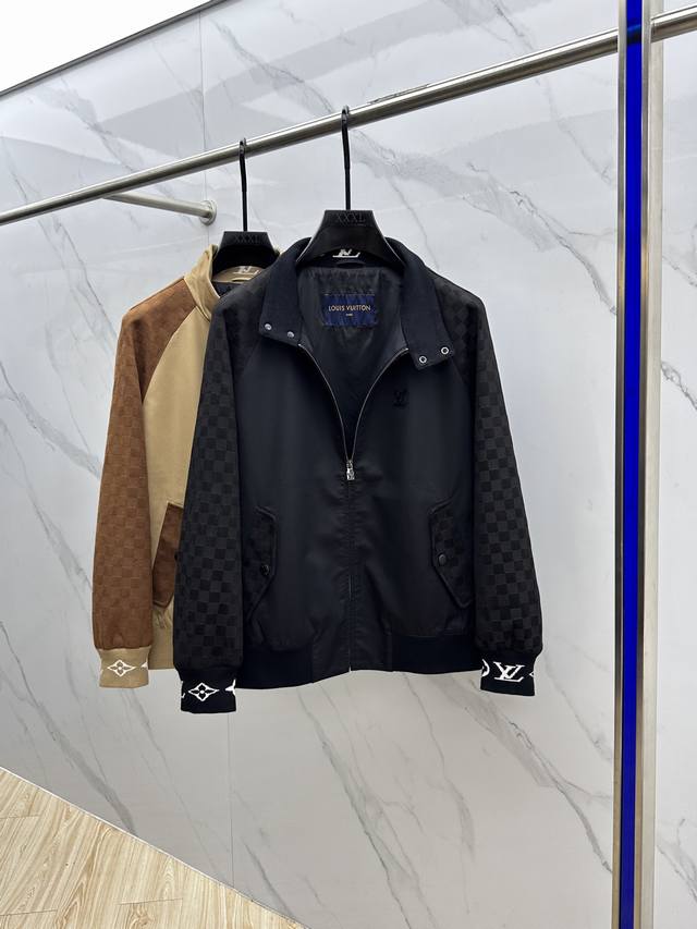 LV* Louis Vuitton's 2025 Early Fall collection features a donkey-branded stand-up collar jacket. This autumn hit features a metal logo design. Comfortable and slimming, it's laid-back and effortless, and paired with clean, simple colors, it's a truly eye-catching piece perfect for everyday wear. Available in sporty pieces embellished with vibrant prints! Sizes: M-3Xl