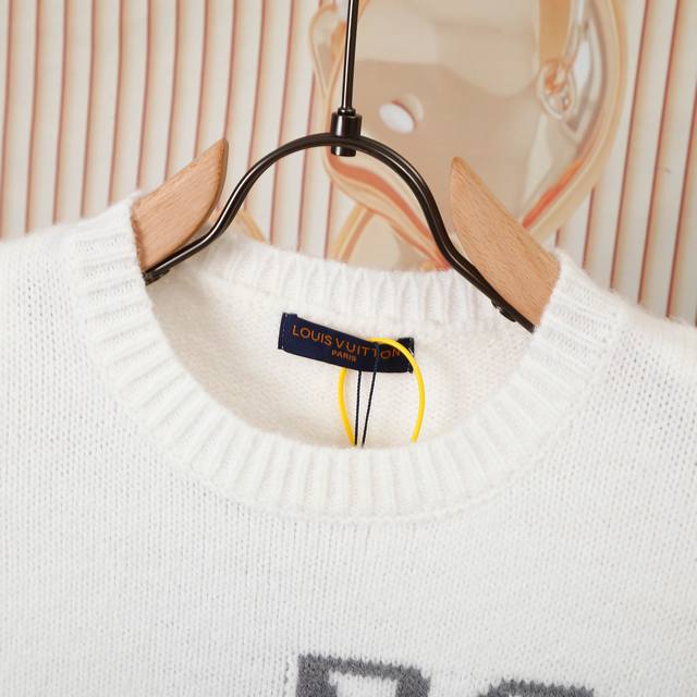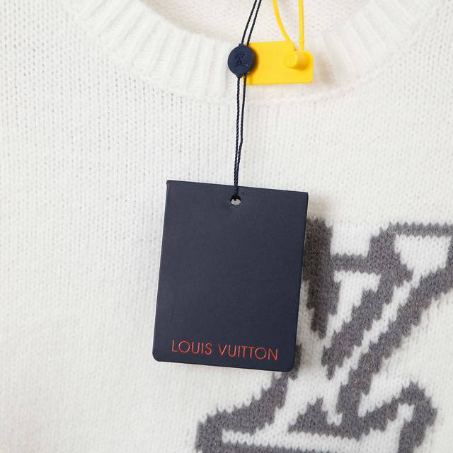Lv Louis Vuitton's popular jacquard wool knit sweater, Os-style, unisex. The entire garment weighs 600 grams, a heavyweight that instantly outsells the market. The wool is knitted on imported machines, using yarn with a high wool content and custom-dyed. This new season's signature sweater features stunning colors, craftsmanship, and elements. Highly crafted, this imported sweater fabric offers exceptional skin-friendliness and impeccable detailing. Colors: Gray, Blue, White, and Black. Style: V8821. Sizes: S, M, L, XL.