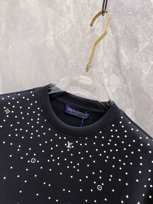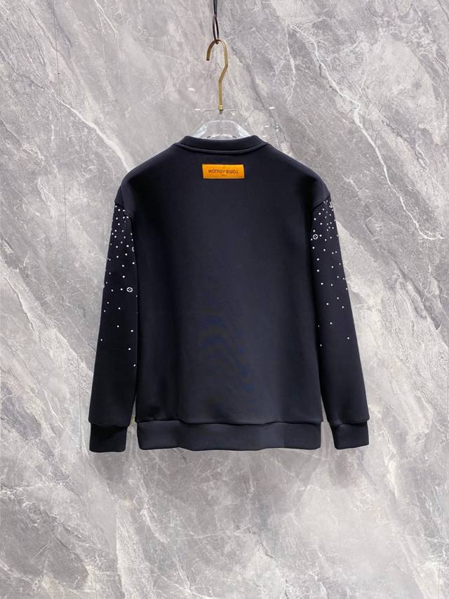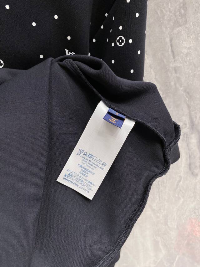 Lv New product, OEM product from trade channels, 2025Ss Fall/Winter men's round-neck space cotton sweatshirt, creating the ultimate in luxurious sportswear and leisure style, offering the most comfortable and eye-catching experience. The Monogram pattern gradually fades from bottom to top, giving the elegant design a refined touch. Soft mercerized cotton is cut for a slightly loose fit, with ribbed hem and cuffs. The adjustable hood features a knitted strap. Custom-supplied fine-spun brushed cotton fabric offers a smooth and delicate feel, unlike standard cotton. The fleece lining perfectly accentuates the silhouette, creating a flawless, luxurious athletic look. Colors: White, Black. Sizes: S, M, L, X, L, D, S, Shoulder 45, Chest 104, Length 68, Sleeve 61.
