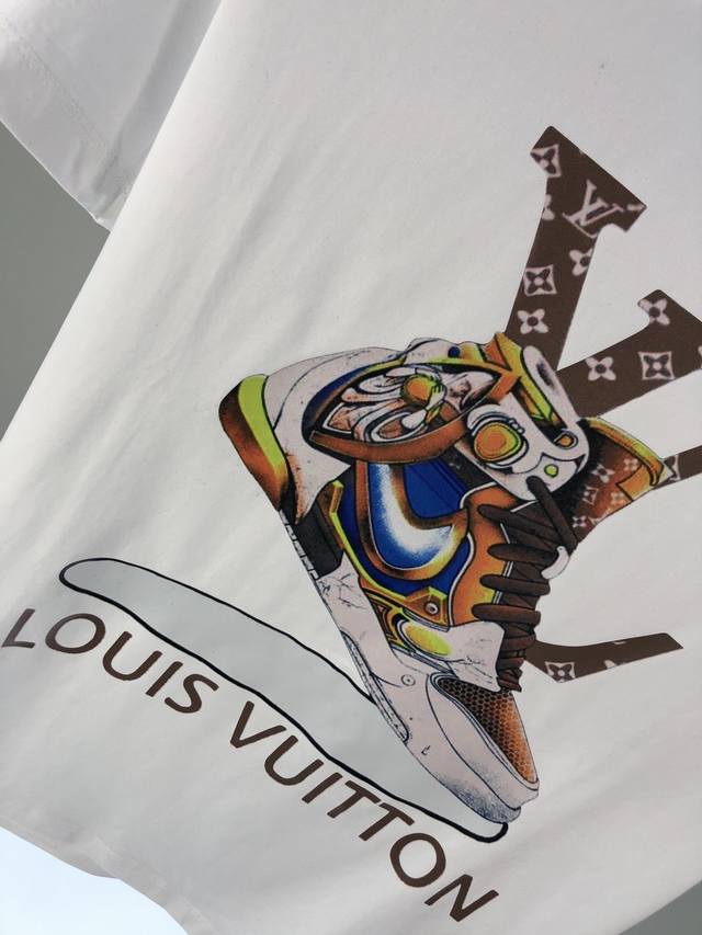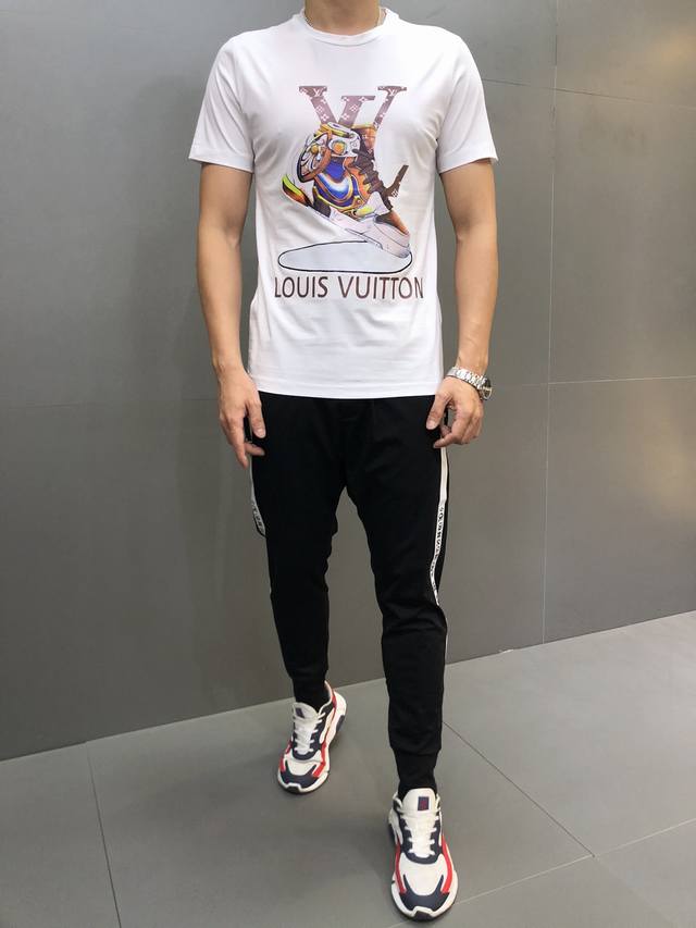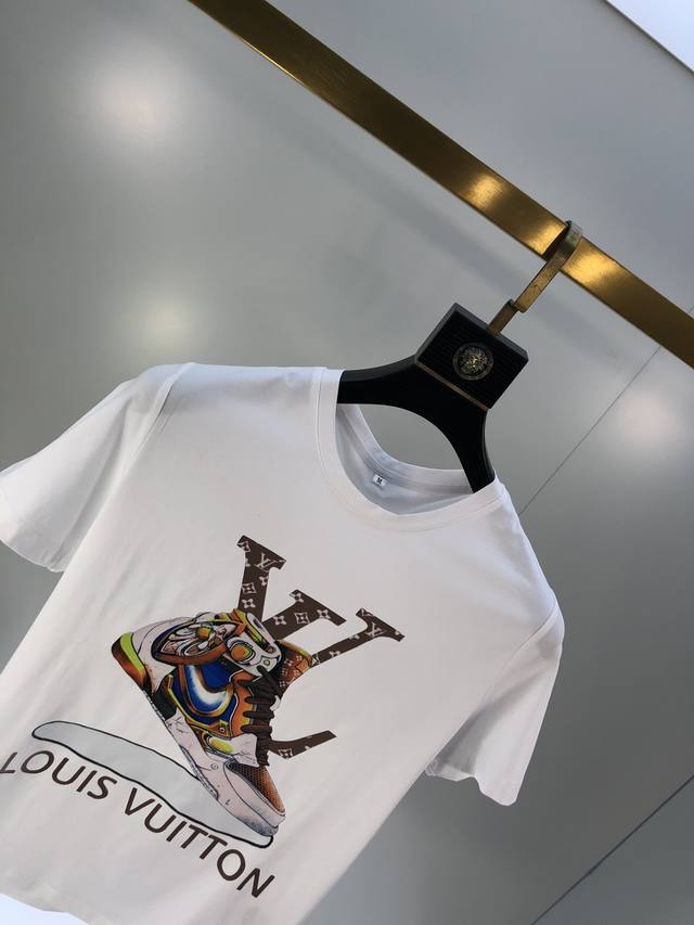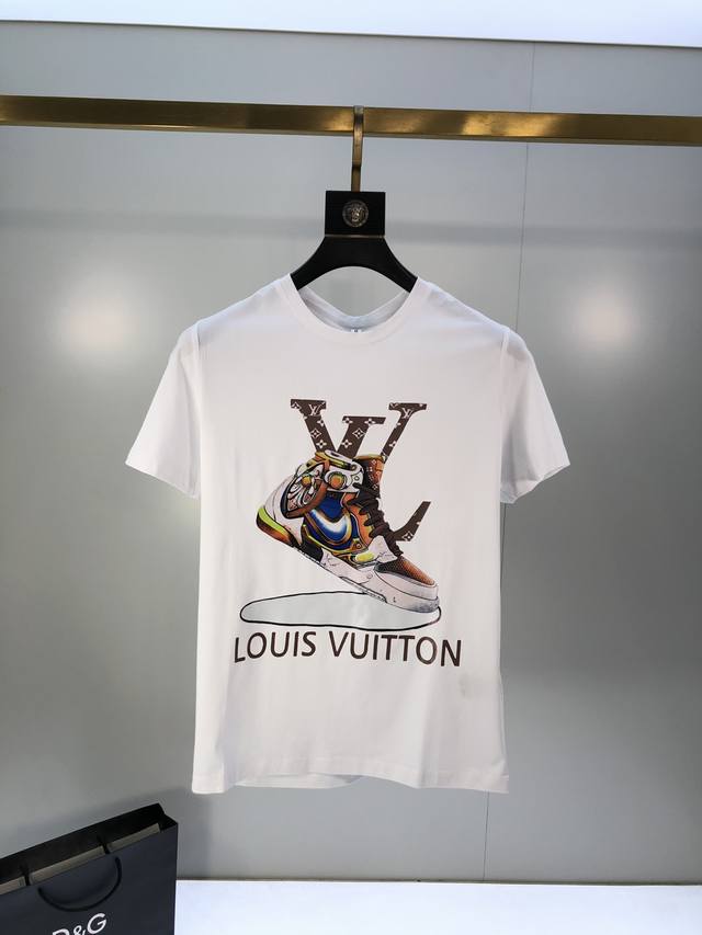 Lv. This is the latest hot-selling short-sleeved T-shirt of the year. Available in store, this shirt features an all-over pattern with high-temperature lamination. Simple and elegant yet stylish, it features a classic luxury brand logo. Made from imported 120D double-ply, double-mercerized cotton. It feels comfortable and smooth, and is breathable and cool. It's definitely at the forefront of fashion! Sizes: M-XxxL. A size M wears 1120, 130, and