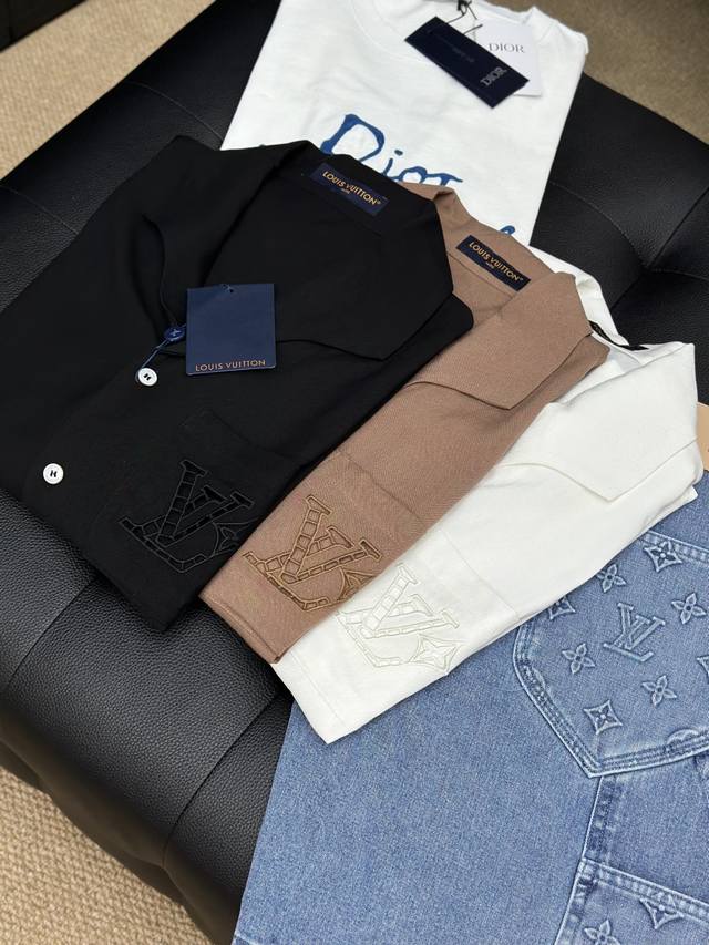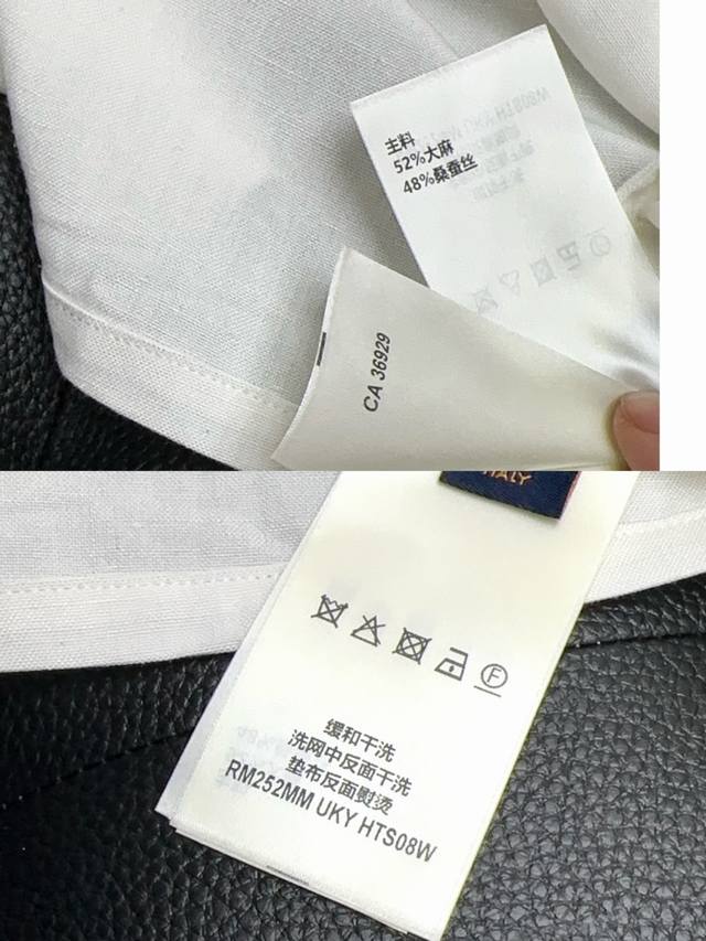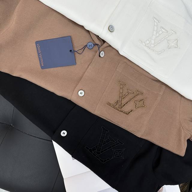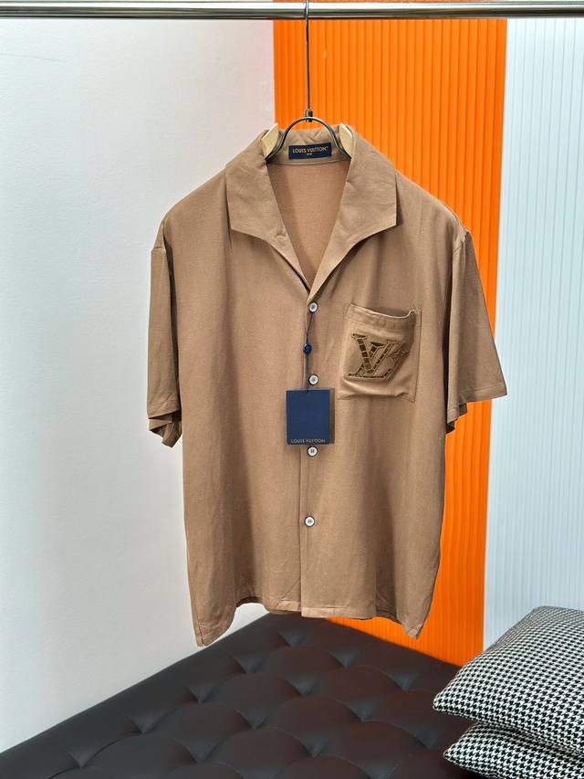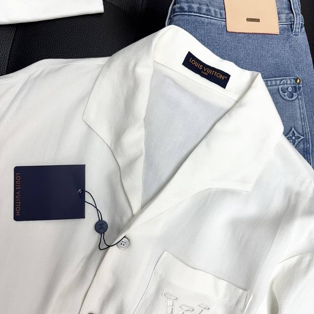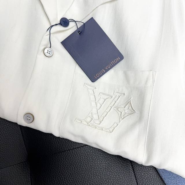 Lv Top-quality original DDD Cotton Linen Silk Embroidered Summer Shirt DDD This village shirt is made of a blend of mulberry silk and hemp, presenting a delicate texture similar to Shandong silk. English-style embroidery outlines a hollowed-out logo on the chest pocket, and the open collar and short sleeves convey a relaxed summer feel. DDD Casual fit, 52% hemp, 48% mulberry silk. The chest pocket features an English-style embroidered logo, a resort-style open collar, pearlescent buttons, and a metal base. DDD Size: S-XL DDD