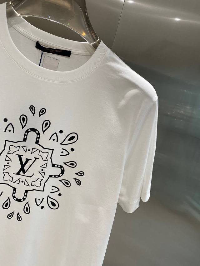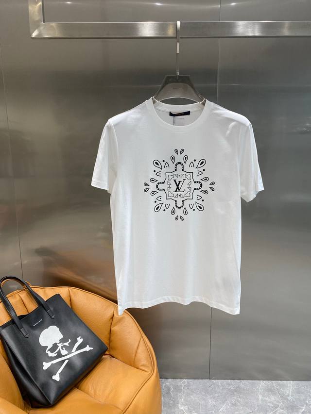 Lv2025 New Arrival: Crew Neck Short-Sleeve T-Shirt. Made with premium Xinjiang long-staple cotton fabric, it's skin-friendly, comfortable, and breathable. The brand logo on the chest is created using 3D digital printing, showcasing the brand's luxury. This is identical to the original, something only a small factory could achieve. Exquisite craftsmanship and high quality; soft, comfortable, and breathable to the touch. Fashionable and trendy, with details identical to the original. A must-have for stylish men. For those who know their stuff. Hand wash inside out. Sizes: S~3XL. Available in white and black.