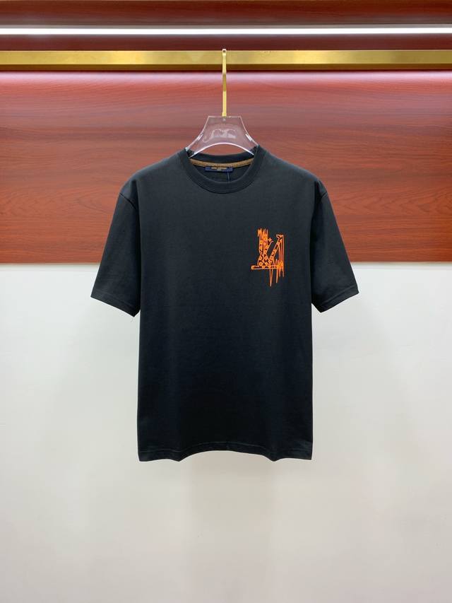 Lv2025 New summer short-sleeved T-shirt, the first exclusive online release of the personalized art series, all-match style, perfect details, pure cotton fabric, very delicate, original fabric, the same style as celebrities, high-quality, very comfortable, fashionable and personalized, super versatile, good-looking, the same style for men and women, color: black, white, size: M-3Xl