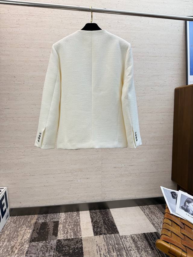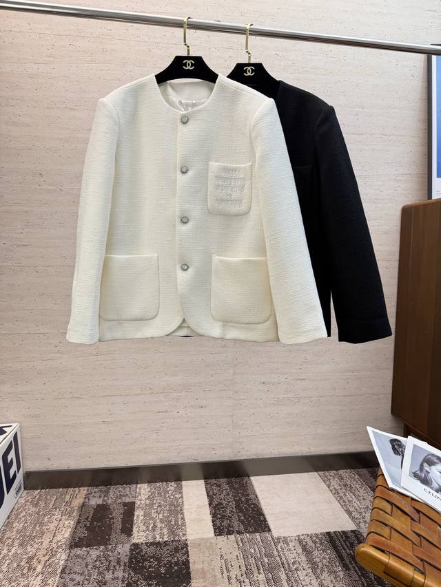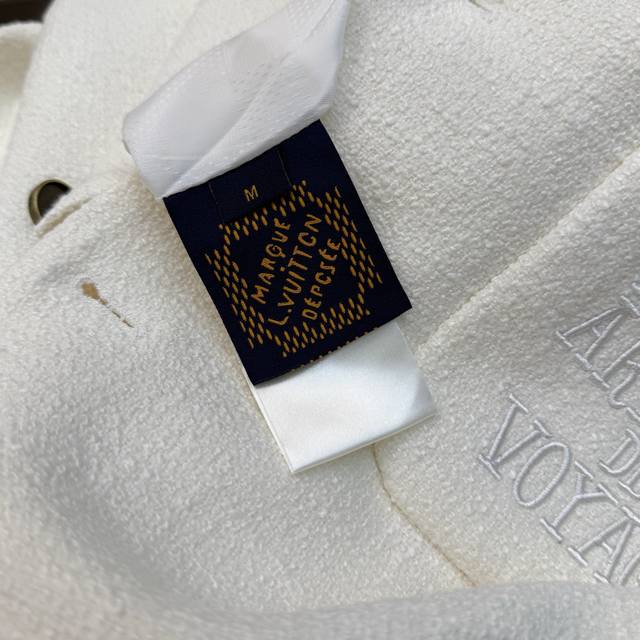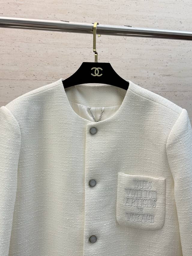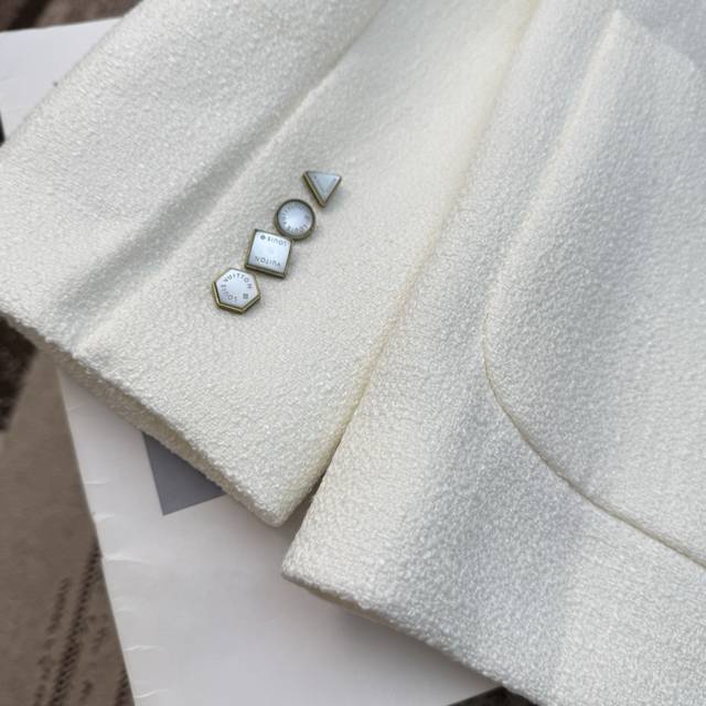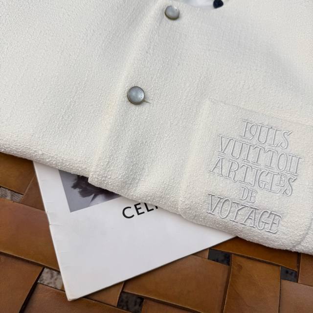 Lv25Ss new pocket embroidered suit fabric is made of wool blend material. The fabric is high-temperature shaped and laminated to 200D to achieve the original three-dimensional effect. The design features a counter-point patch pocket design. The threshold is opened and closed with a new turquoise button. The pearl surface engraving is clear and delicate. It is custom-made. The cuffs are embellished with antique gold snap buttons. The leather hooks are matched with antique bronze chains. A full set of custom hardware accessories are molded and equipped with three-standard accessories. The collarless and curved hem denim version is a unique and fashionable design. The collarless and buttoned closure is a curved hem, which makes the whole piece more dynamic and streamlined. Sizes: S-Xl