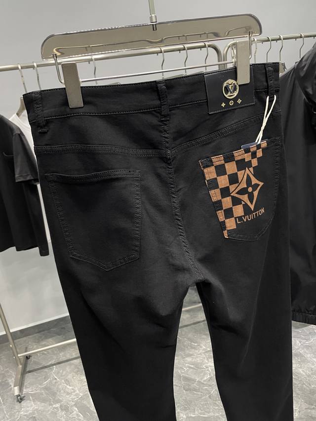 Lv25Ss Spring/Summer New Arrival: Luxury Metal Buckle Design Men's 3D Cut, Hip-lifting, Washed, Casual, Slim Fit, Stretch Black Jeans! DDD Exclusive Heavyweight Order: The highest-quality Louis Vuitton jeans to date, these are also the most stylish and comfortable jeans ever made