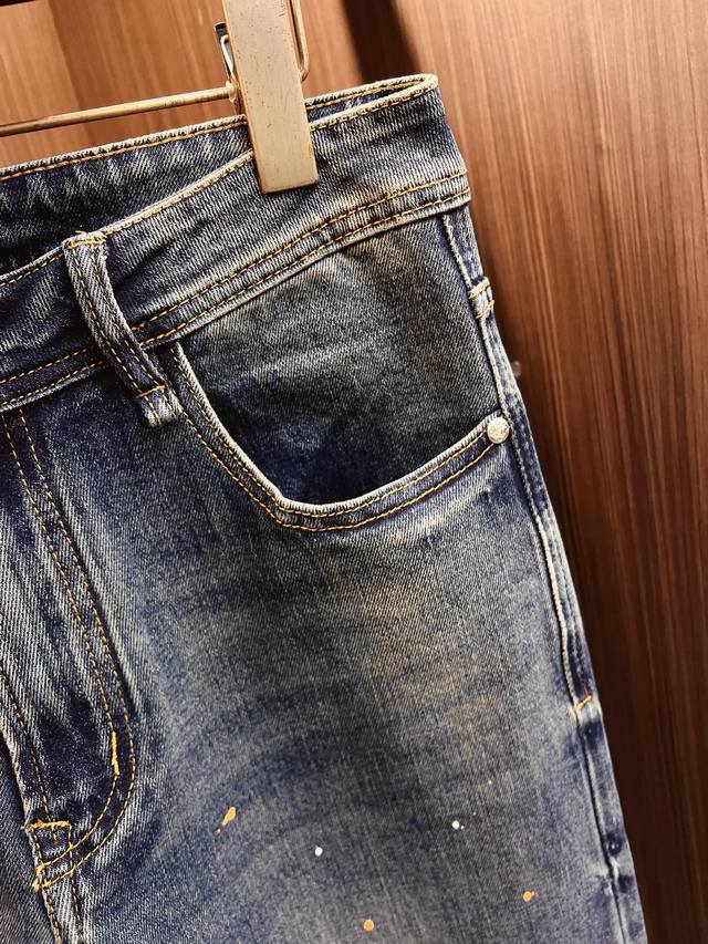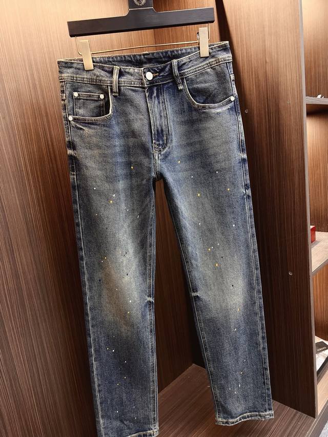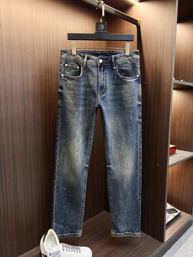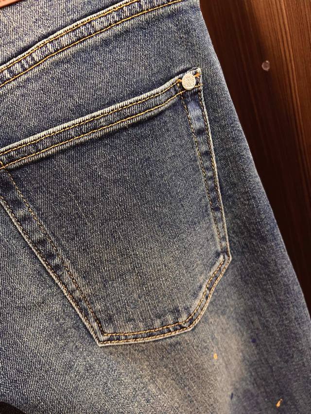 Lve 25-year original men's casual denim jeans, sourced from Hong Kong trading companies, high-end Japanese OEM production, heavyweight platinum-level quality, same order as department stores, featured in official catalogs and posters! A predictably bestselling item, these jeans prioritize fabric and craftsmanship, abandoning previous styles and tones for a minimalist approach. They are pure, clean, and crisp, offering versatile styling options for both business and casual looks, exuding confidence and style! Made with premium imported raw denim fabric, specially selected from 13oz pure Japanese Okayama denim, using a heavyweight environmentally friendly plant enzyme washing process. The texture has a subtle vintage feel, quite beautiful. After washing, the fabric is soft and delicate yet retains a strong structure and slight elasticity, providing excellent comfort. No finishing touches are used, preserving the purest denim color! DDD's details are impeccable, perfectly inheriting the elements of the new season. The latest leather waistband highlights the brand's characteristics, combined with elegant brand elements, emphasizing the quality of details. Featuring the season's signature twisted button, it adds a lot to the visual appeal, making it fashionable and modern. It's exquisitely crafted, showcasing the brand identity in every detail while strongly reflecting the overall luxury and sophistication! DDD's color scheme is a classic, high-end boutique color, with clean, sharp lines, a color that appeals to men. It's a very pure, saturated gray, with a perfect cut and excellent hip-lifting and slimming effect. It can be easily paired with any top in your wardrobe, offering wide versatility and satisfying various everyday outfits. It has a great fit and is a must-have for quality enthusiasts and denim lovers! DDD Color: Blue DDD Sizes: 30 31 32 33 34 36 38 DDD