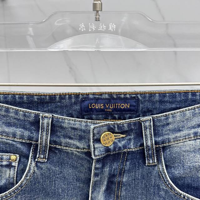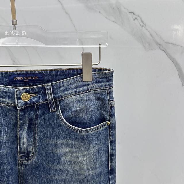 Lv*Louis Vuitton high-end customization, the latest jeans for early spring 2025 are on sale at the counter at the same time. Original customization, replica, hardware accessories, original quality, imported solid color denim fabric, heavy washing, fine workmanship, and fine stitching. Perfect for wearing! Preferred single product