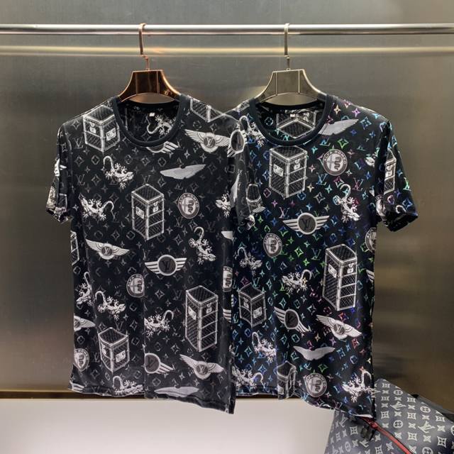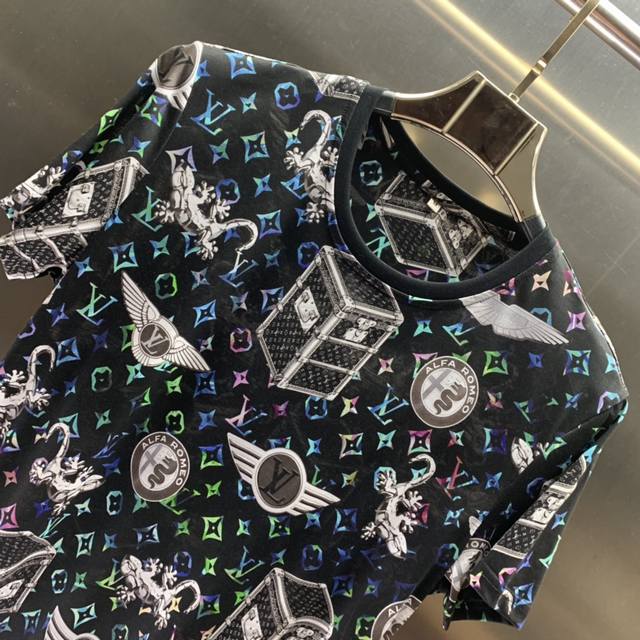 Lv's early spring official website is releasing a new style, making this a must-have for men. This high-end round-neck short-sleeved T-shirt is made from custom mercerized cotton fabric and features high-quality 3D digitally printed logos. It's soft, comfortable, and breathable, perfect as a base layer or worn alone. Hurry and grab it if you're interested! This high-quality brand is worth having! Colors: Black and Blue Sizes: M-3Xl
