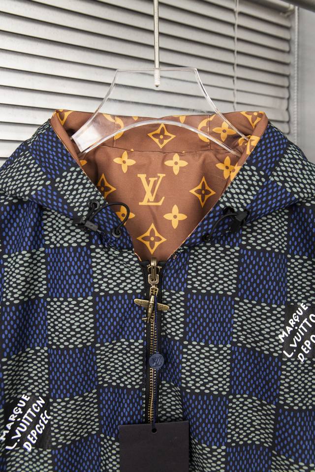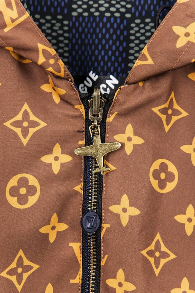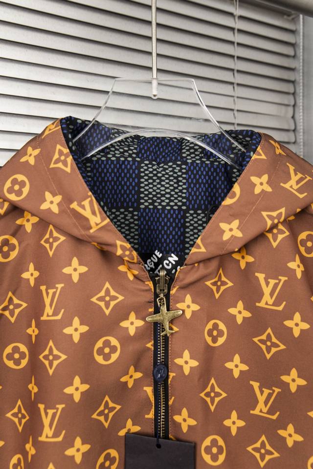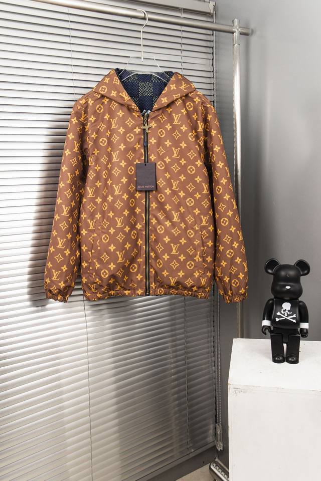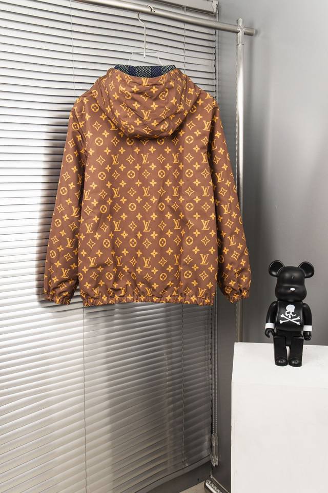 Louis Vuitton's new classic Lv monogram full print double-sided zipper hooded jacket double-sided