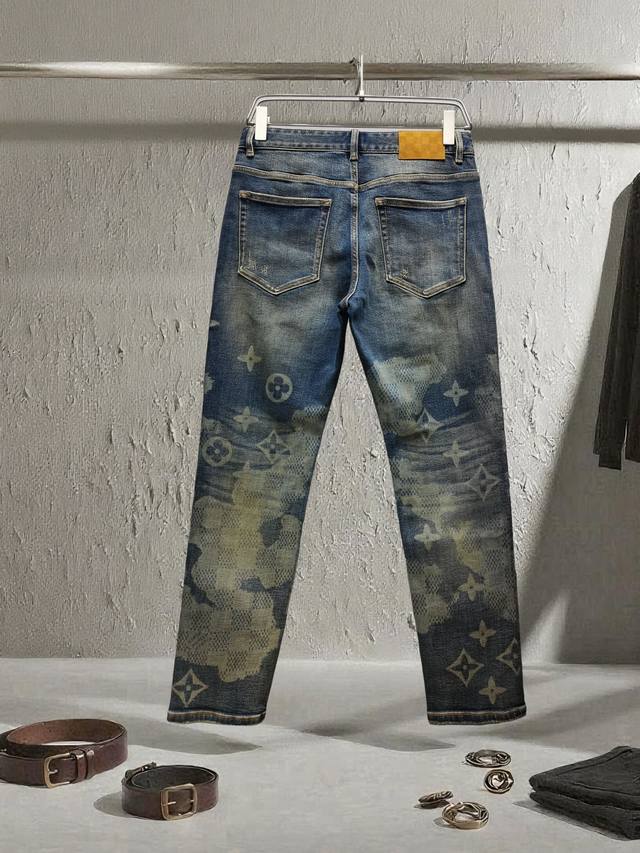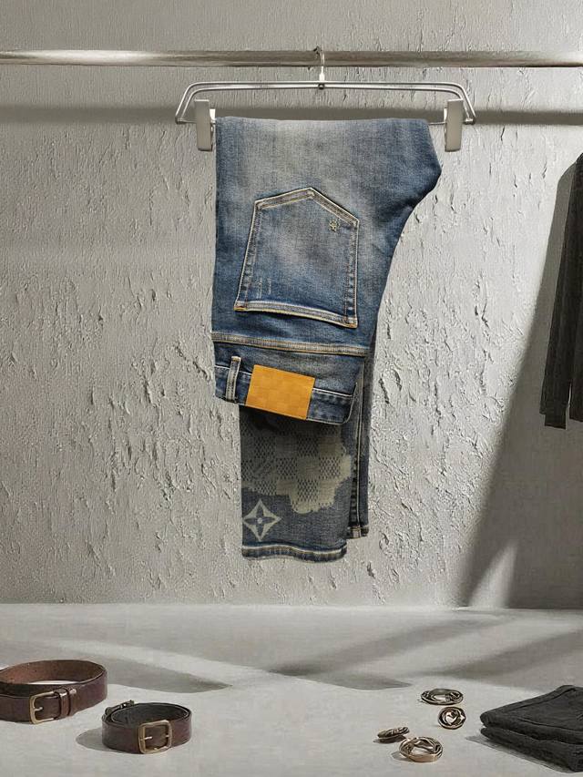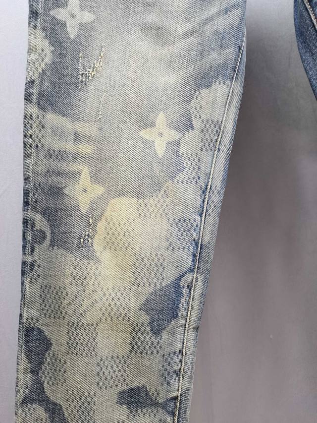 New autumn and winter Lv heavy-duty four-leaf clover jeans, all over the floral