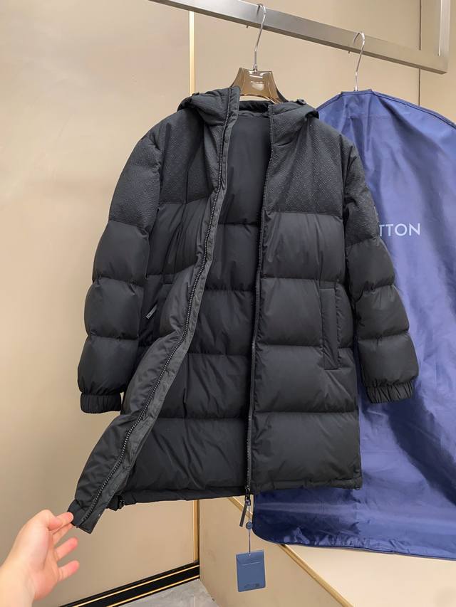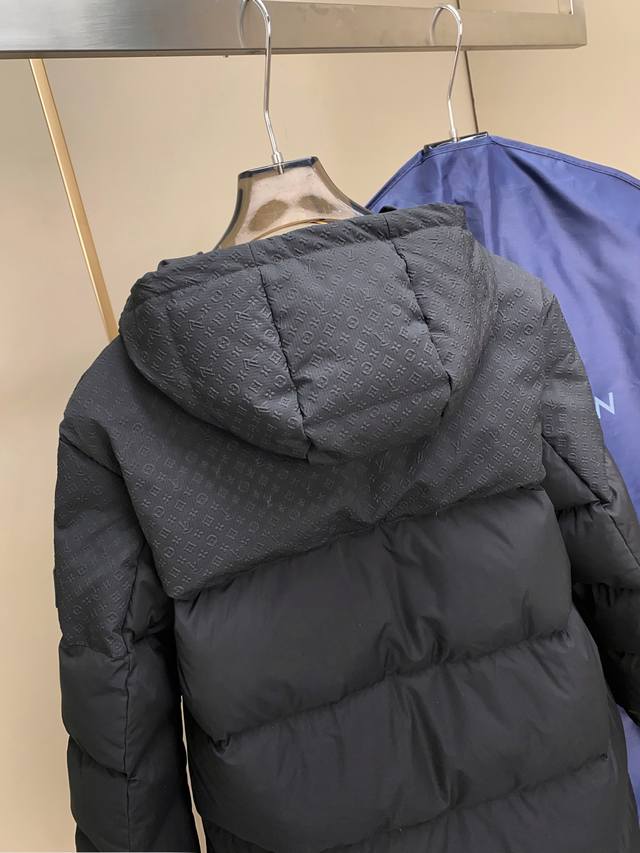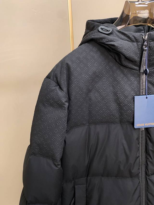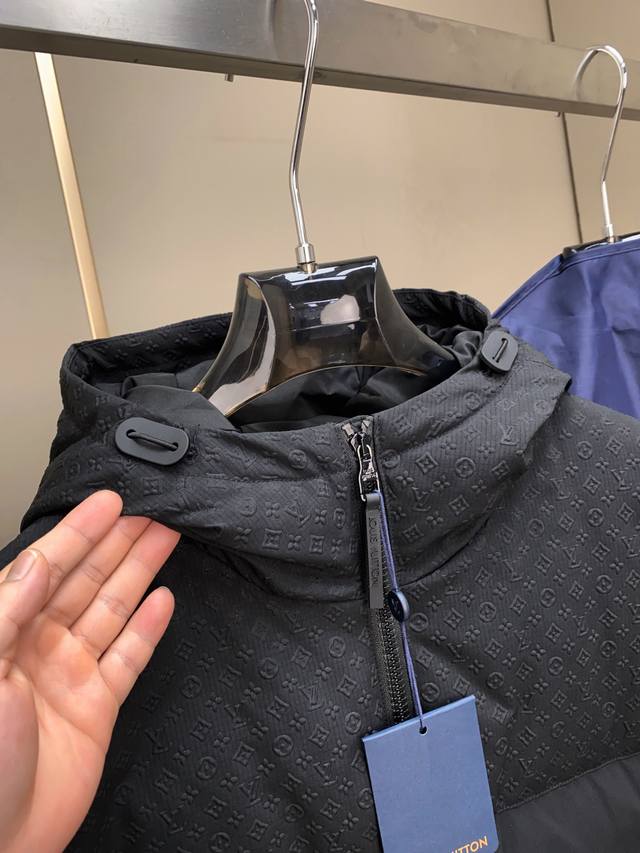 New LV Embossed Patchwork Mid-Length Down Jacket. Made with a blend of fabrics, this patchwork design ensures not only softness, comfort, and durability but also a unique texture and appearance. The technical fabric features a jacquard embossed print. Jacquard weaving involves using a controlled shuttle during the weaving process to create patterns. Embossing uses a heat-pressing process to create a three-dimensional effect, giving the fabric a textured surface. Embossing is achieved by heat-pressing the fabric with a mold, raising the patterns and creating a defined silhouette. The yoke design flatters the figure and showcases the wearer's elegant lines. The detachable hood, integrated into the collar, is both practical and stylish. The hood is adorned with a Mini Monogram embossing that complements the overall style. Brand elements include a classic Louis Vuitton silicone patch on the left sleeve. This detailed design showcases the brand's unique charm and exquisite craftsmanship. DDD Sizes: 48-54 DDD 25032 Size Data Reference: DDD 48: Shoulder Width 56cm - Chest 124cm - Length 88cm - Sleeve Length 60cm DDD 50: Shoulder Width 58cm - Chest 128cm - Length 90cm - Sleeve Length 61cm DDD 52: Shoulder Width 60cm - Chest 132cm - Length 92cm - Sleeve Length 62cm DDD 54: Shoulder Width 62cm - Chest 136cm - Length 94cm - Sleeve Length 63cm DDD Size Recommendation (Standard Fit): For someone 174cm tall and weighing 140kg, size 48 fits well! For men weighing under 140 lbs, choose size 48; for 140-155 lbs, choose size 50; for 150-170 lbs, choose size 52; and for 170-190 lbs, choose size 54. For women, size 48 is sufficient.