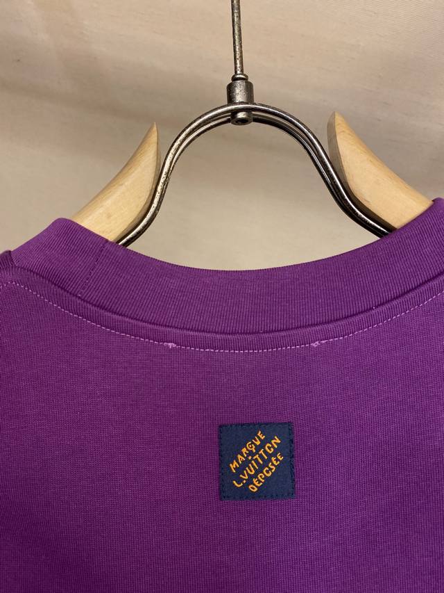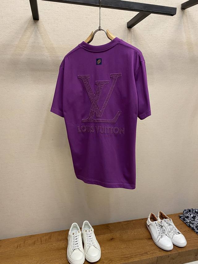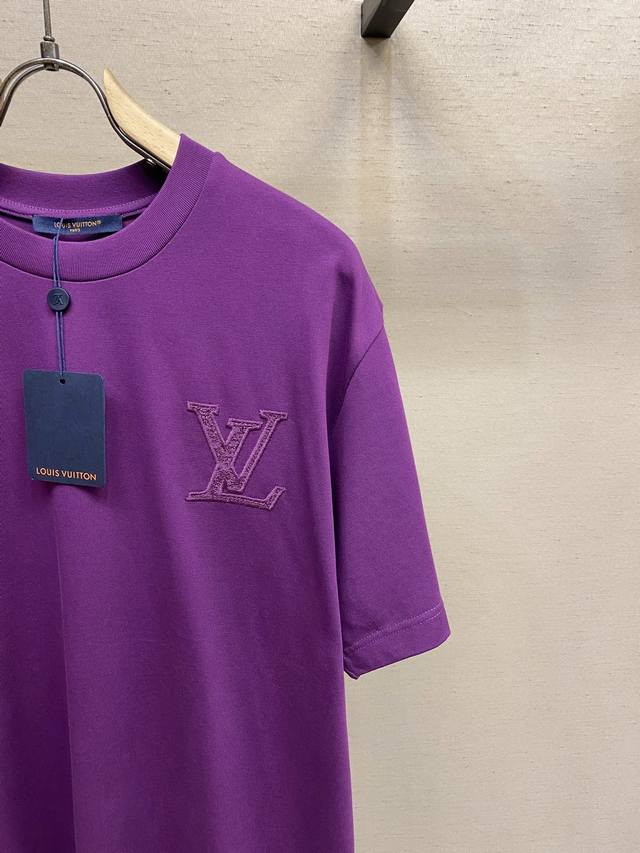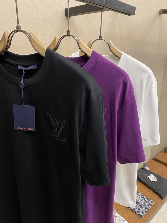 p 1V, 1V Louis Home 2025Fw Early Spring Heavyweight Cotton Super Heavyweight Workmanship Logo Embroidered Front and Back Half-Sleeve T-shirt.