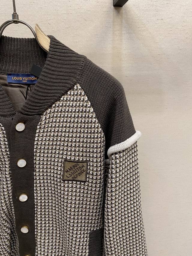 This cotton bomber jacket, from the Spring/Summer 2025 runway, features a distinctive LV stitch jacquard pattern depicting the miniature LV logo on the sleeves. Elegant ribbing outlines the collar, raglan sleeves, and pockets. The Marque L.Vuitton D