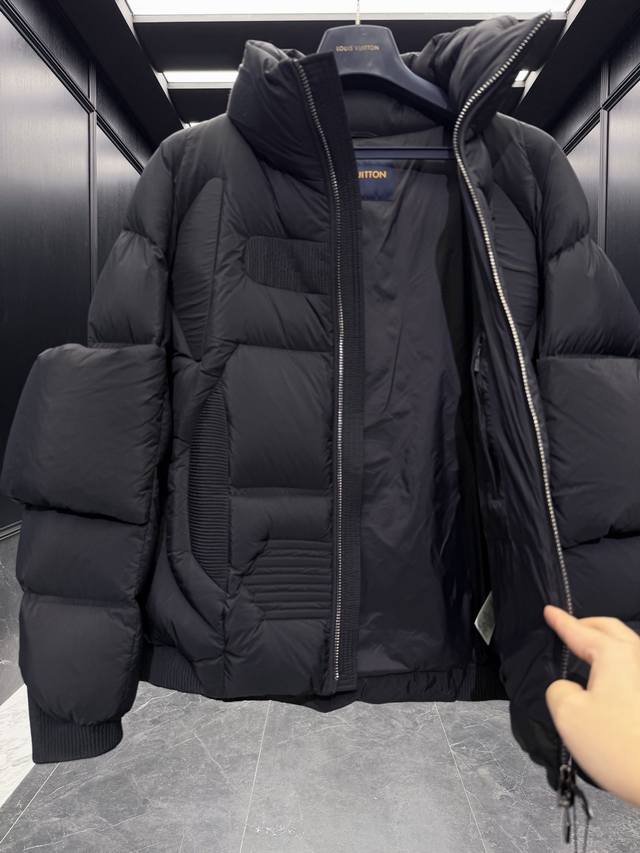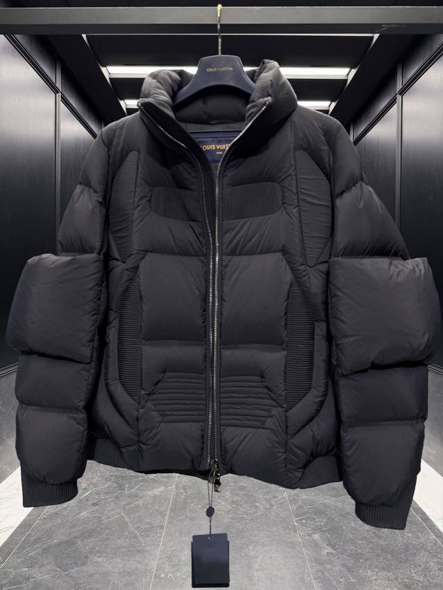 Premium Down Jacket Louis Vuitton Lv2025 Brand New Heavy-Duty Mecha-Style Stand Collar Down Jacket. Goose down filling. Extremely full and luxurious. Easily get through the winter in one piece. Features embroidered ribbon at the collar. A truly heavy-duty piece. Comes with a large tote bag, original nylon suit bag, extra-large box, original hanger, and complete gift box for your home delivery. This short down jacket is a unique piece designed for the modern man who values both functionality and style. A quintessential example of avant-garde menswear, this jacket is made from lightweight, water-repellent nylon fabric. It features innovative quilting and embroidered ribbon at the collar. Made from a fine, soft fabric, this garment features a polyester lining, down filling, a stand-up collar, zip closure, concealed pockets, elastic cuffs, an elastic hem, unique quilting, adhesive lettering, and LV-patterned zipper pulls. Sizes: 48-56.