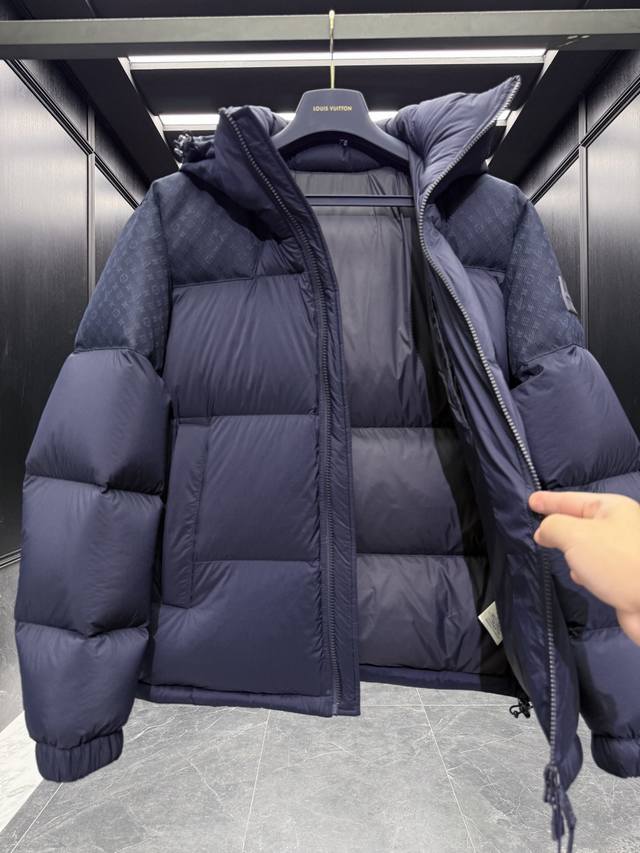 Premium Down Louis Vuitton Lv 141 Monogram Jacquard Hooded Down Jacket with Detachable Hood and Adjustable Stand Collar. Goose down filling. Experience the fullness for yourself. Super lightweight and super fluffy. One piece is enough to easily get you through the winter. Comes with a large tote bag, original nylon suit bag, extra-large box, original hanger, and complete gift box for home delivery. Features ultra-lightweight, tear-resistant quilted nylon filling with delicate down, subtly displaying the Monogram jacquard pattern in lightweight recycled nylon. DDD Standard Fit Ddd Monogram Jacquard Patchwork Ddd Zippered Front Ddd Filling: 90% White Goose Down Ddd Magnetic Snap-on Front Pockets Ddd Elastic Cuffs Ddd Adjustable Hem Ddd 100% Nylon Ddd Do not wash Ddd Do not bleach Ddd Do not tumble dry Ddd Do not iron Ddd Professional dry clean Ddd Gentle dry clean Ddd Use mesh bag for reverse dry clean Ddd Size: 48-56 Black Navy Ddd D00780 DDD