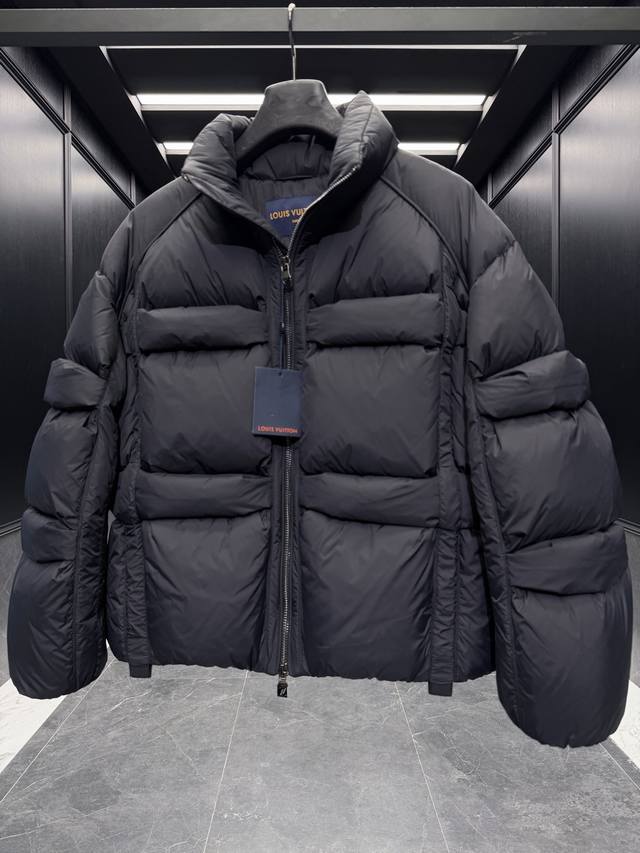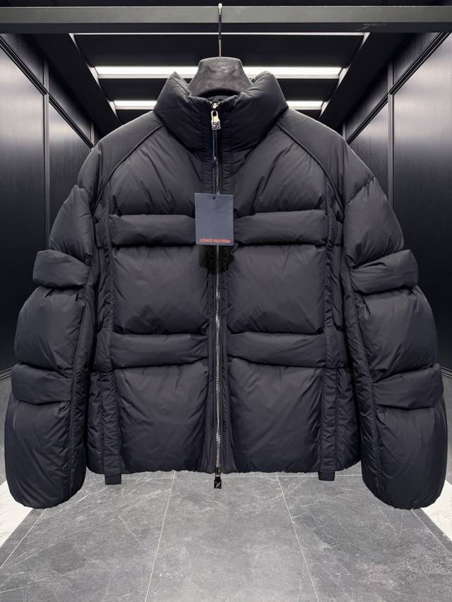 Premium Down Louis Vuitton LV Runway Style Functional Down Jacket with 3D Lines. Multiple adjustable drawstrings. Goose down filling. Extremely heavy-duty craftsmanship. A best-selling item with super, super, super high fill power. Each jacket contains approximately 500g of goose down, more than the extra-long version. DDD highly recommends this best-selling item. The filling is extremely full. You have to try it on to feel the fit; pictures can't really show its features. The fit is incredibly comfortable. DDD comes standard with an extra-large tote bag, an original nylon suit bag, an extra-large box, an original hanger, and a complete gift box for home delivery. DDD Ultralight tear-resistant quilted nylon filling with fine down, lightweight recycled nylon, and a subtle Monogram jacquard pattern on the lining. Multi-dimensional lines paired with adjustable drawstrings. Loose fit. Monogram jacquard lining. Zippered front. Filling: 90% white goose down. Multiple adjustable drawstrings. Elastic double-layered cuffs. Adjustable hem. 100% Nylon. Do not wash . Do not bleach. Do not tumble dry. Do not iron. Professional dry clean only. Gentle dry clean only. Dry clean inside out using a mesh bag. Size: 48-56