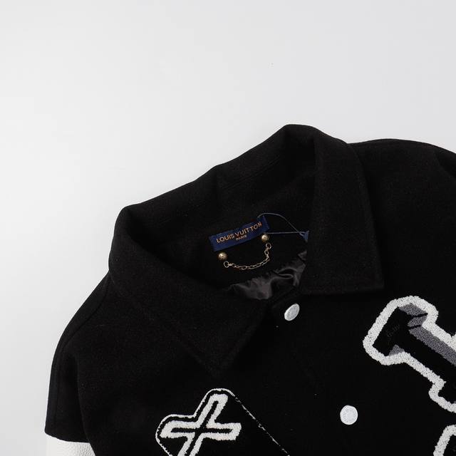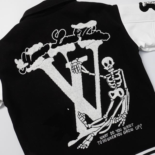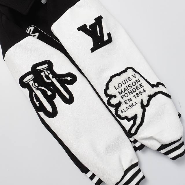 Lv Wizard of Oz baseball jacket 700G high-weight nylon material litchi grain leather