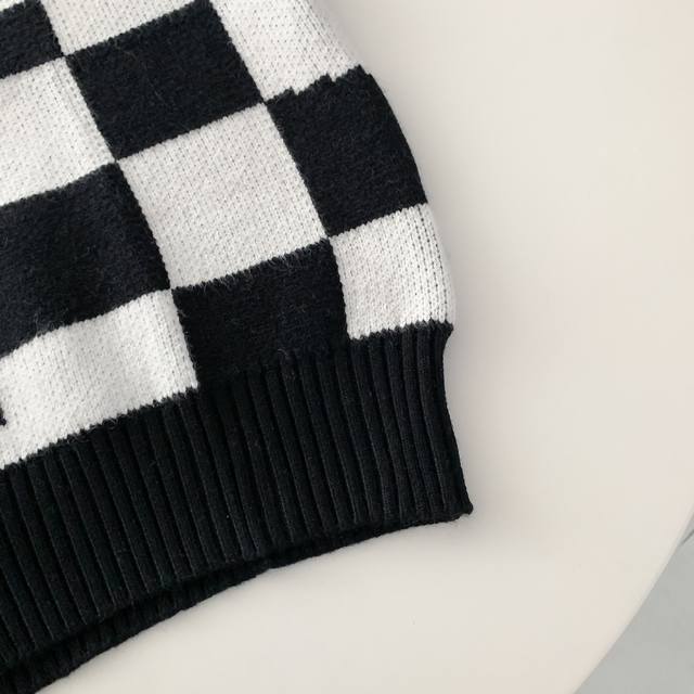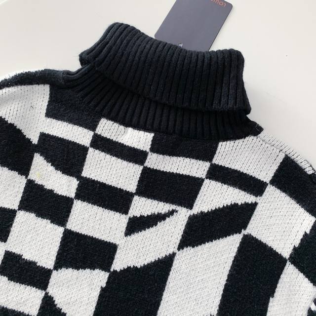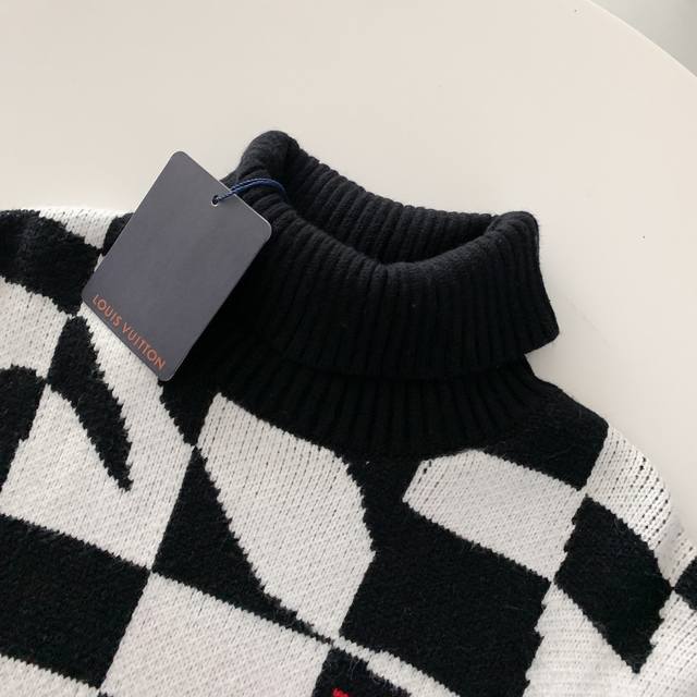 Louis Vuitton Lv Louis Vuitton irregular twisted black and white checkerboard turtleneck sweater latest autumn and winter model Logo logo is sought after every year classic fashion decoration has swept the world