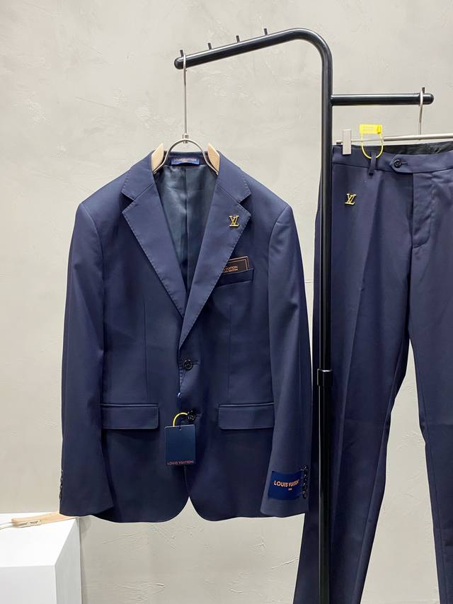 suit. Single-breasted jacket and trousers. Louis Vuitton LV new spring/autumn suit set. Simple casual blazer, custom-made for a foreign trade company. Exclusively imported, original polyester fabric, breathable, soft, and warm, with a straight, drapey feel. The entire garment is neatly sewn and has smooth seams. All hardware and accessories are custom-made, with top-quality accessories featuring logos. This fabric is custom-woven, and quality products from reputable manufacturers are simply unavailable. This jacket is practical and practical, perfect for everyday wear. Sizes: Jacket 46-58, Pants 29-38