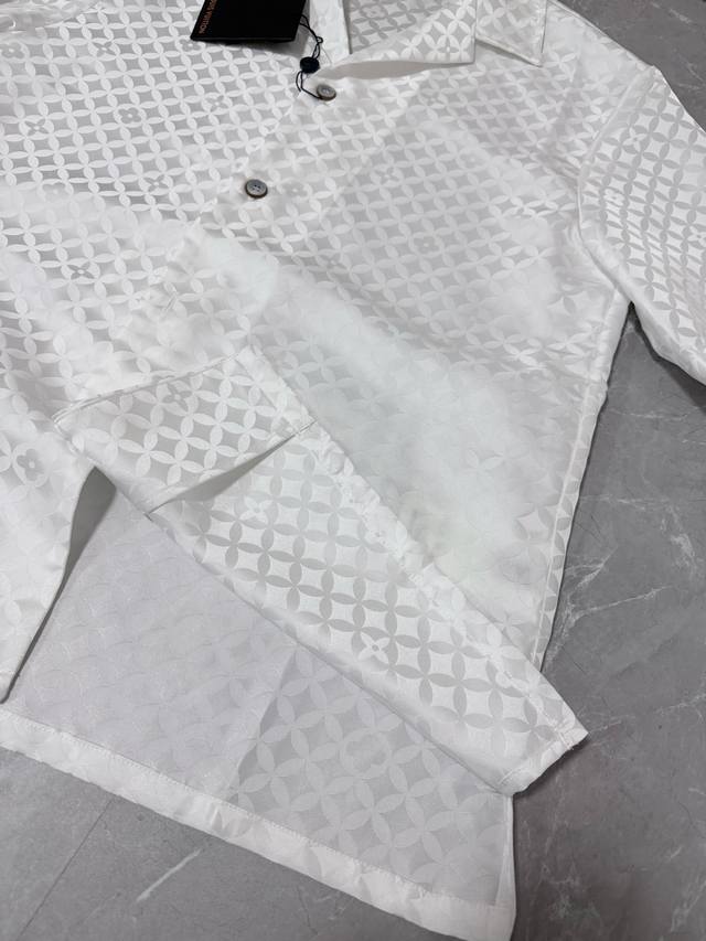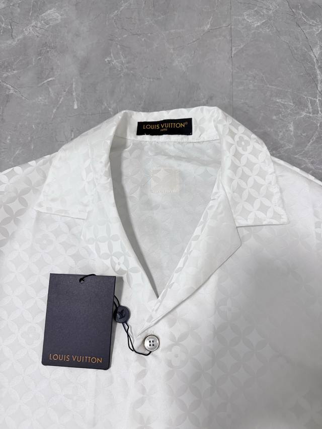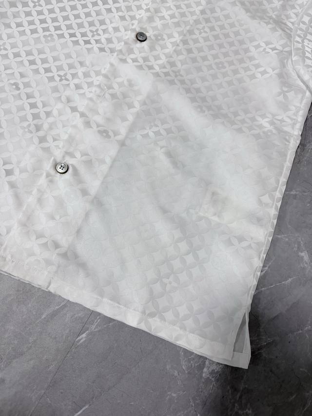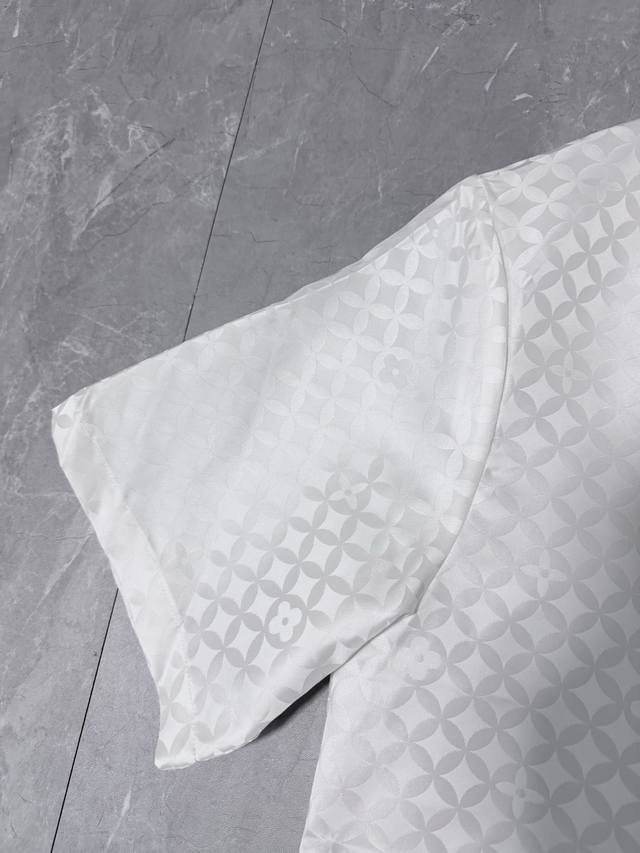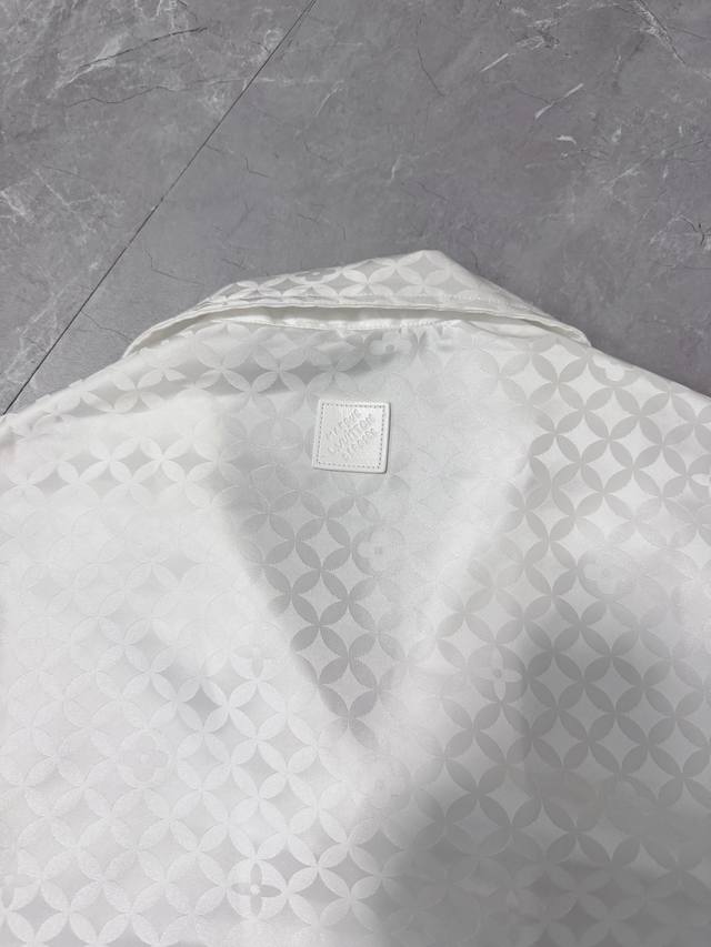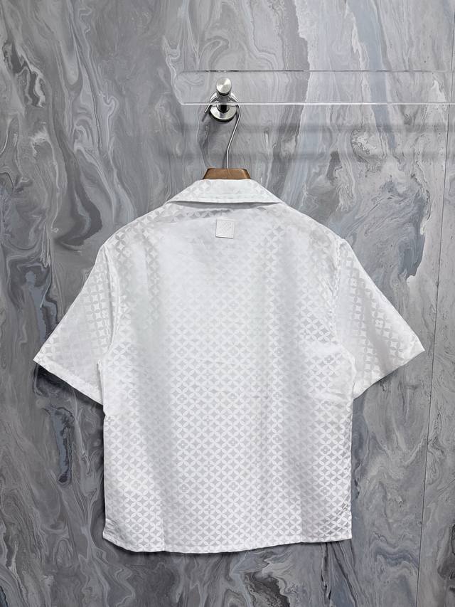 This new Louis 25 jacquard short-sleeved shirt features a subtle sheen that beautifully complements the Dandy Monogram pattern created by pharrell Williams and Nigo for their Fall/Winter 2025 collection. The open collar and pearlescent button placket complete the sophisticated look, making it a perfect match for the shorts. Sizes: S, M, L, XL.