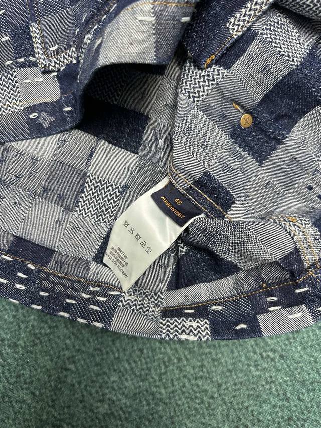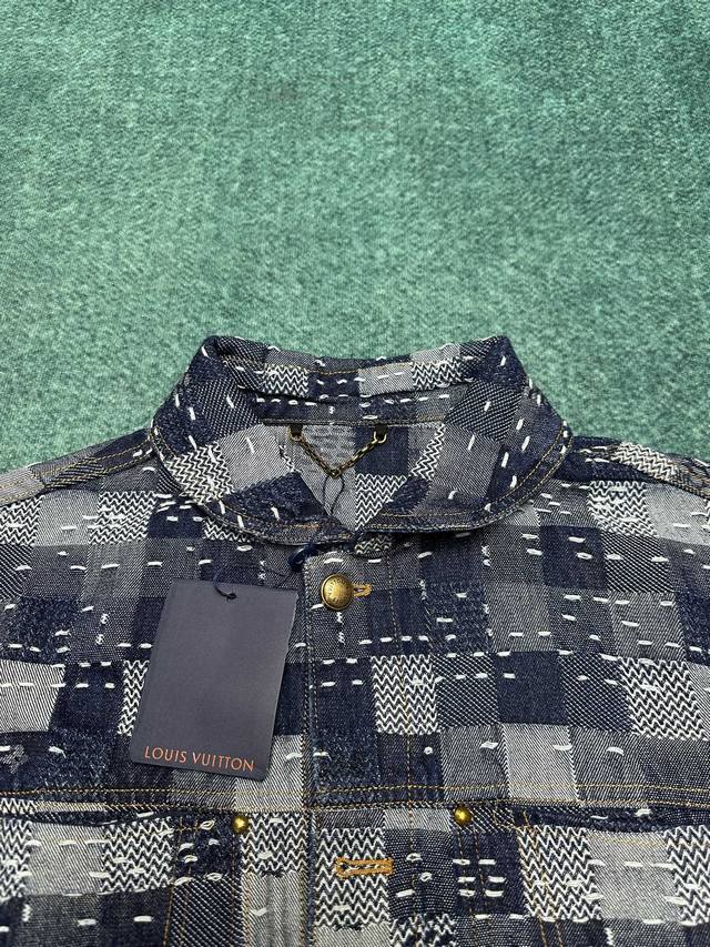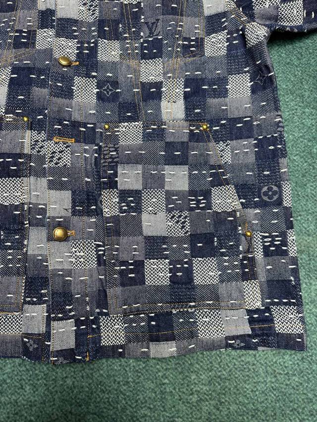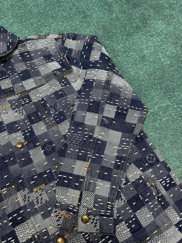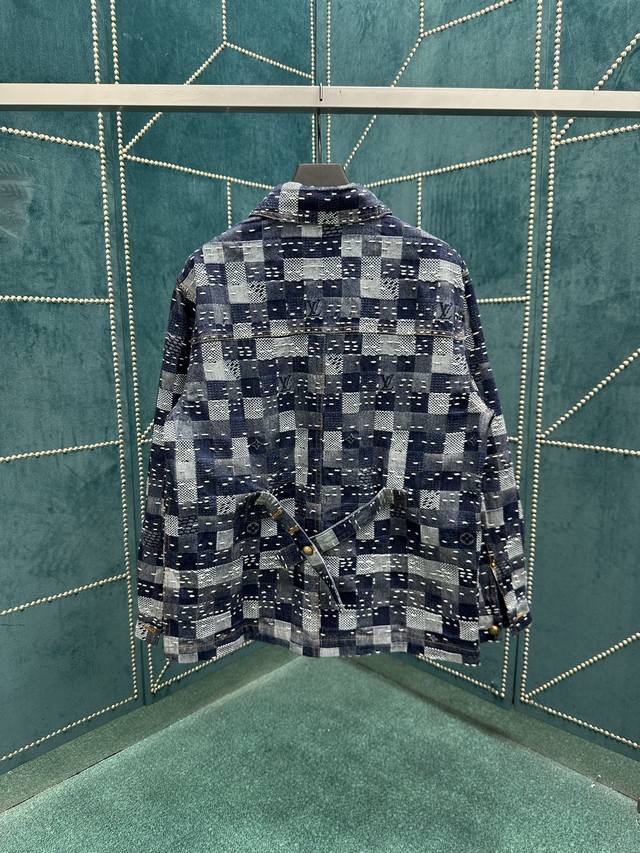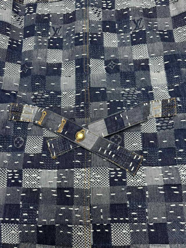 This new Louis Vuitton 25Ss denim belted jacket is from the 2025 Fall/Winter collection by pharrell Williams and Nigo. It showcases Nigo's Japanese traditional craftsmanship through a patchwork Damier jacquard weave. The curved collar elegantly balances the workwear silhouette, while the glossy domed metal buttons add a touch of sparkle. It can be paired with matching trousers for a runway look. Sizes: S, M, L, XL.