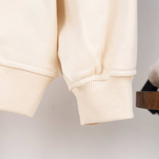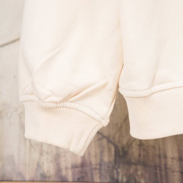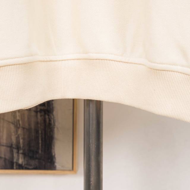 Fabric: 380 fish-scale single-strand terry, long-yarn cotton, custom-woven and custom-dyed, with 2x2 double-yarn terry threads, custom-dyed in the same vat.
