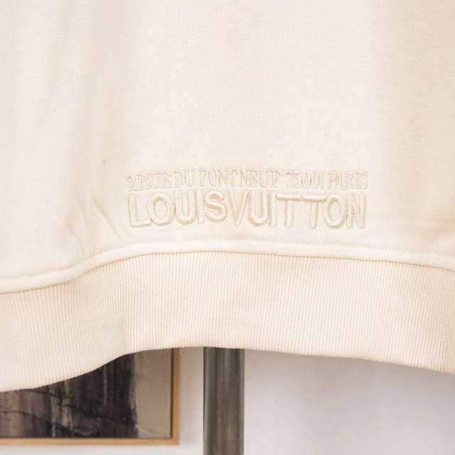 cuff, it pairs perfectly with the matching pants for a relaxed cruise look. The Louis Vuitton patch on the chest creates a full texture, and the brand logo embroidery brightens the waist.