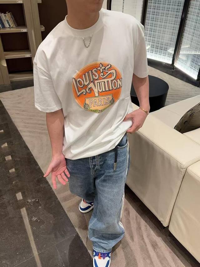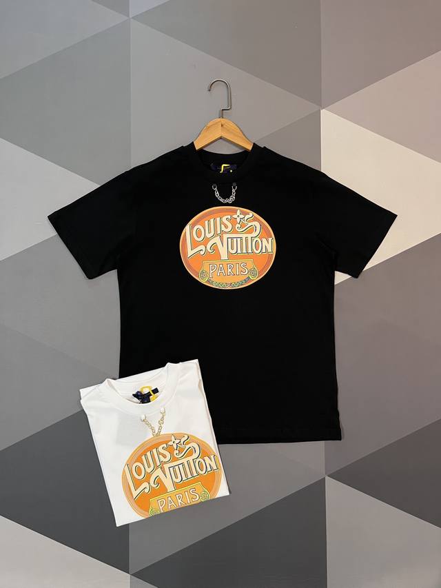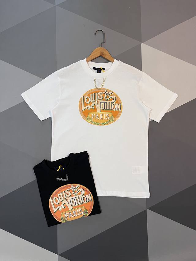 25 new Lv chain retro pattern short-sleeved T-shirt, size: Xs~L, loose version,