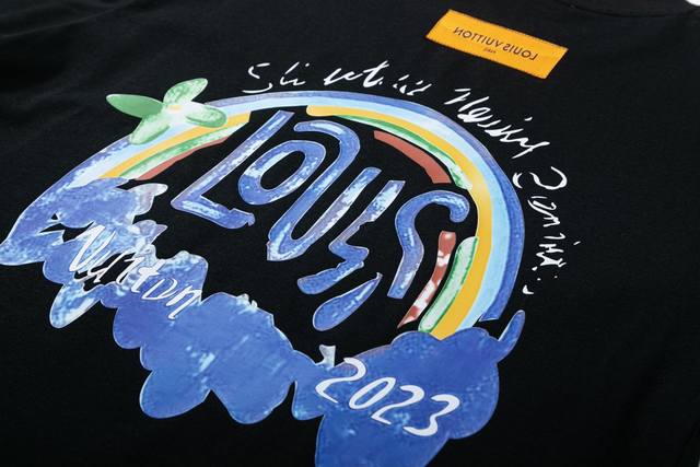 Louis Vuitton limited edition 25Ss new astronaut print logo round neck short sleeves. Very comfortable to the touch. The latest brick cabinet synchronization in spring and summer. Os drop shoulder style. Fashionable and personalized. Super versatile and good-looking. Suitable for both men and women. Must-have item. Label collar label. Washed wheat three labels are complete.