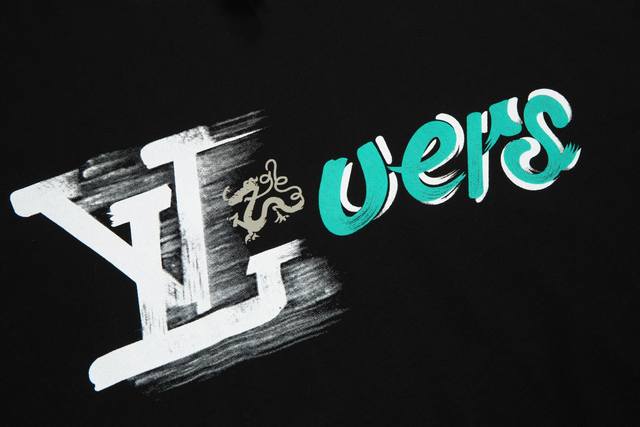 High quality Lv Louis Vuitton Dragon Year graffiti letter short sleeves, color-matching fixed-dyed fabrics, ultra-fine flat screen printing technology, fixed-point printing, using fine gauze material as the screen plate, fixed-dyed pure cotton fabric, more realistic three-dimensional pattern, fabric is made of pure cotton combed cotton fabric, the upper body effect is loose and casual, three labels are complete, the same style for men and women