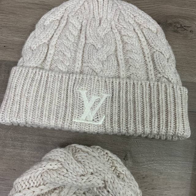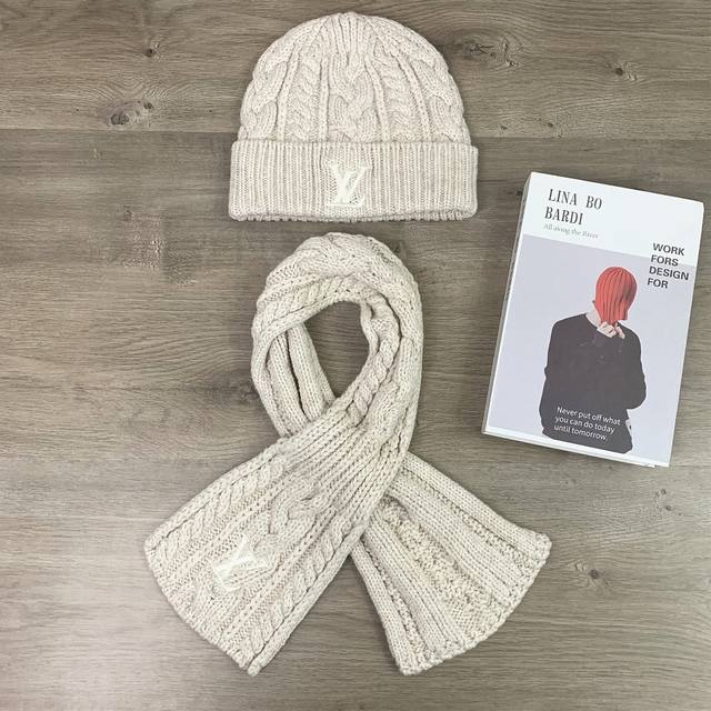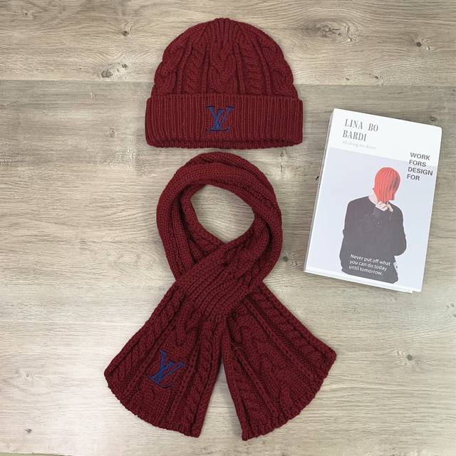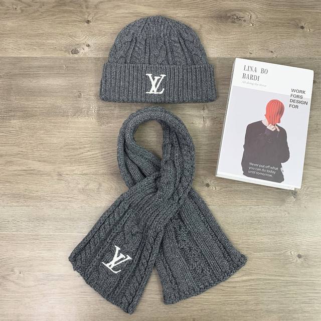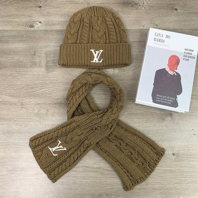 9879# #LV Knitted Hat and Scarf 2-Piece Set for Autumn and Winter, Unisex Knitted Hat and Scarf Set# One Size Ddd Colors: Khaki, Black, Gray, Red, Apricot Ddd